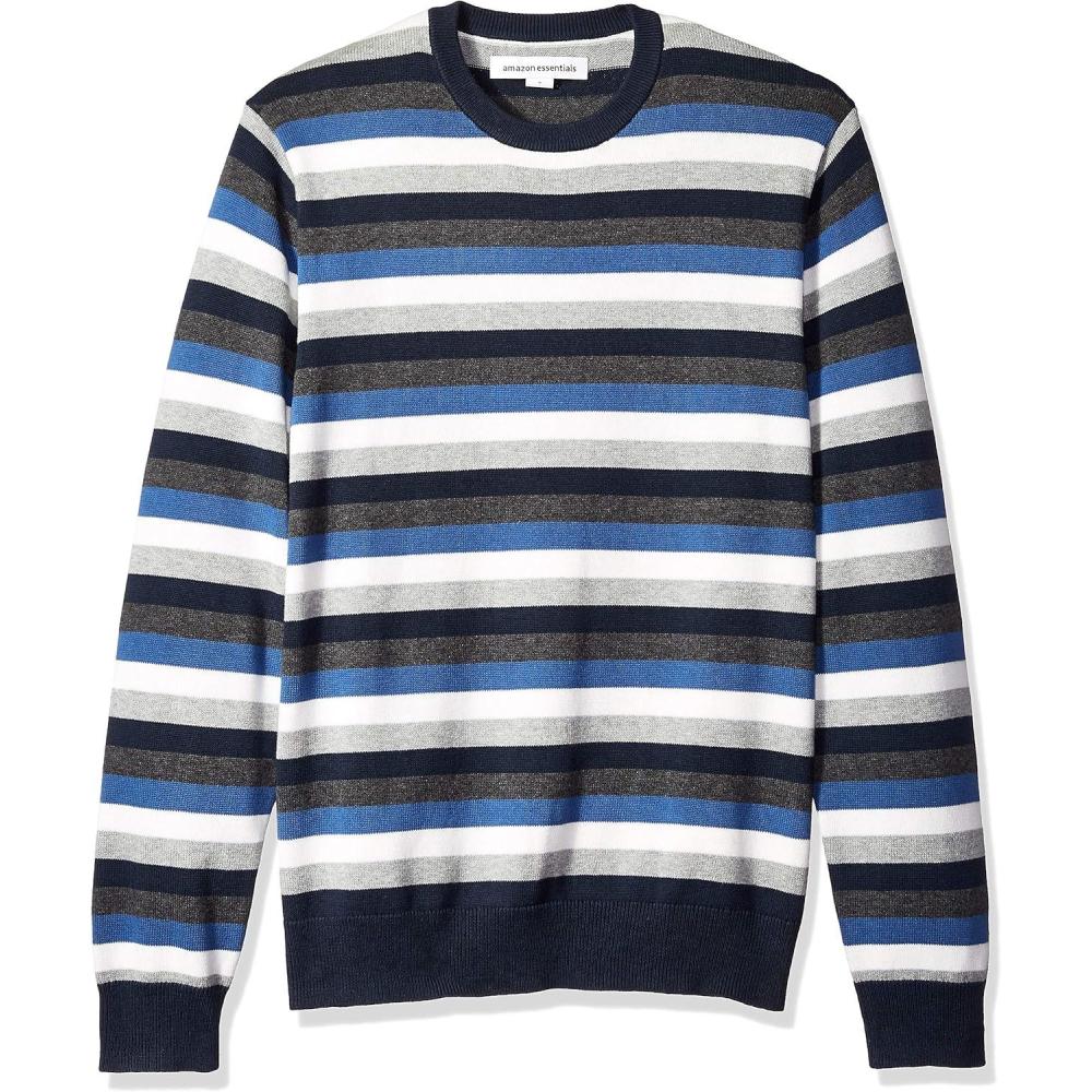 Amazon Essentials Men’s Long-Sleeve Crewneck Sweater, 100% Cotton, Big & Tall Options Available(Multicolor Stripe)