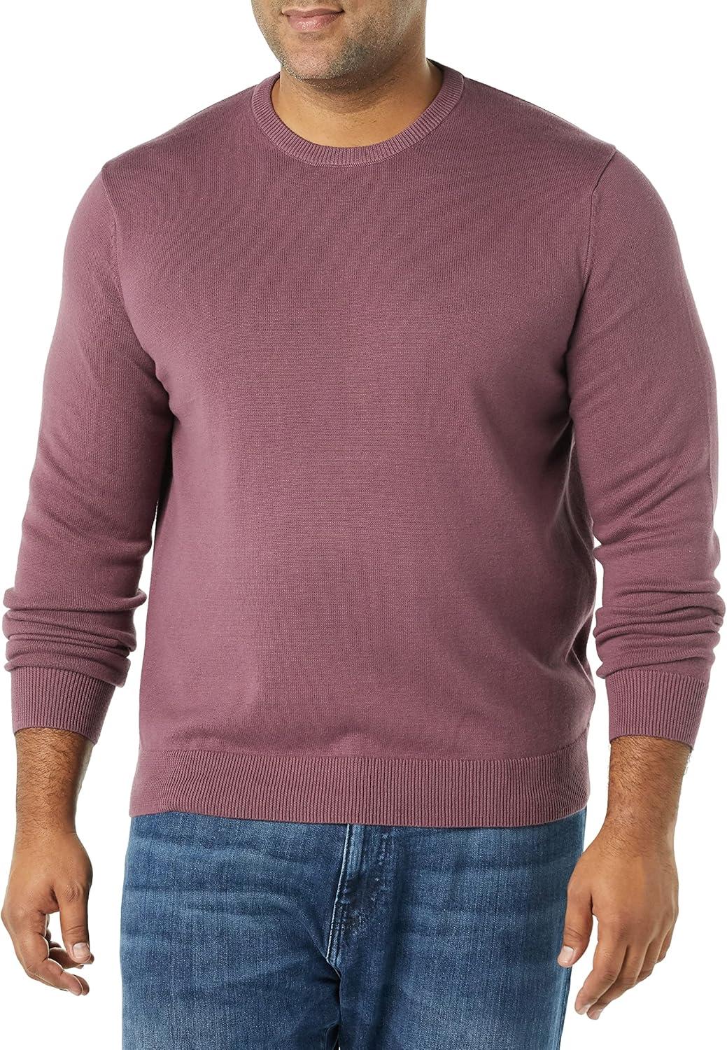 Amazon Essentials Men’s Long-Sleeve Crewneck Sweater, 100% Cotton, Big & Tall Options Available(Plum)