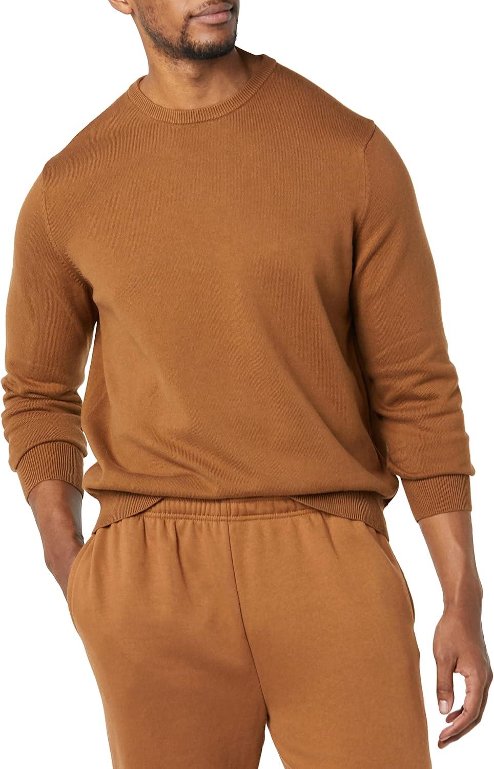 Amazon Essentials Men’s Long-Sleeve Crewneck Sweater, 100% Cotton, Big & Tall Options Available(Toffee Brown)