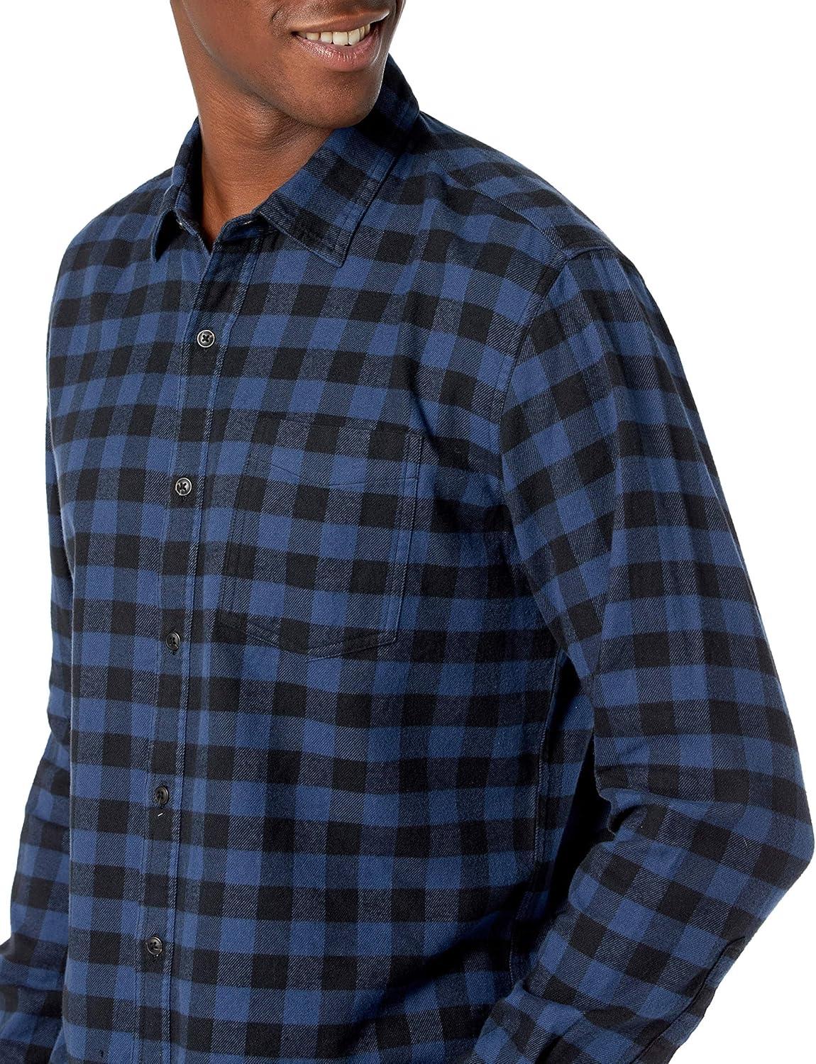 Amazon Essentials Men’s Long-Sleeve Flannel Shirt (Available in Big & Tall)(Black Blue Buffalo Plaid)