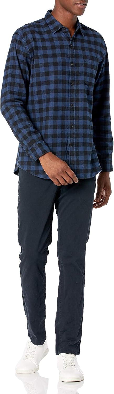 Amazon Essentials Men's Long-Sleeve Flannel Shirt (Available in Big & Tall)(Black Blue Buffalo Plaid)
