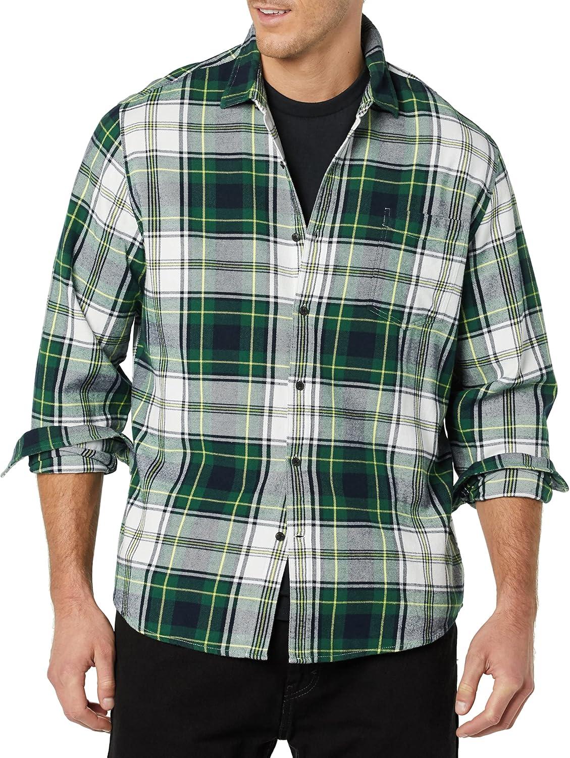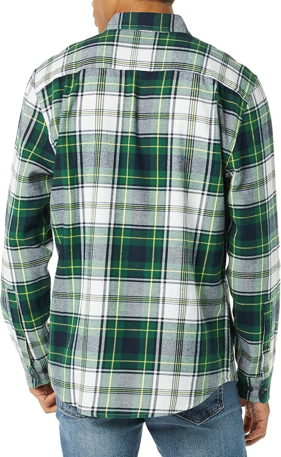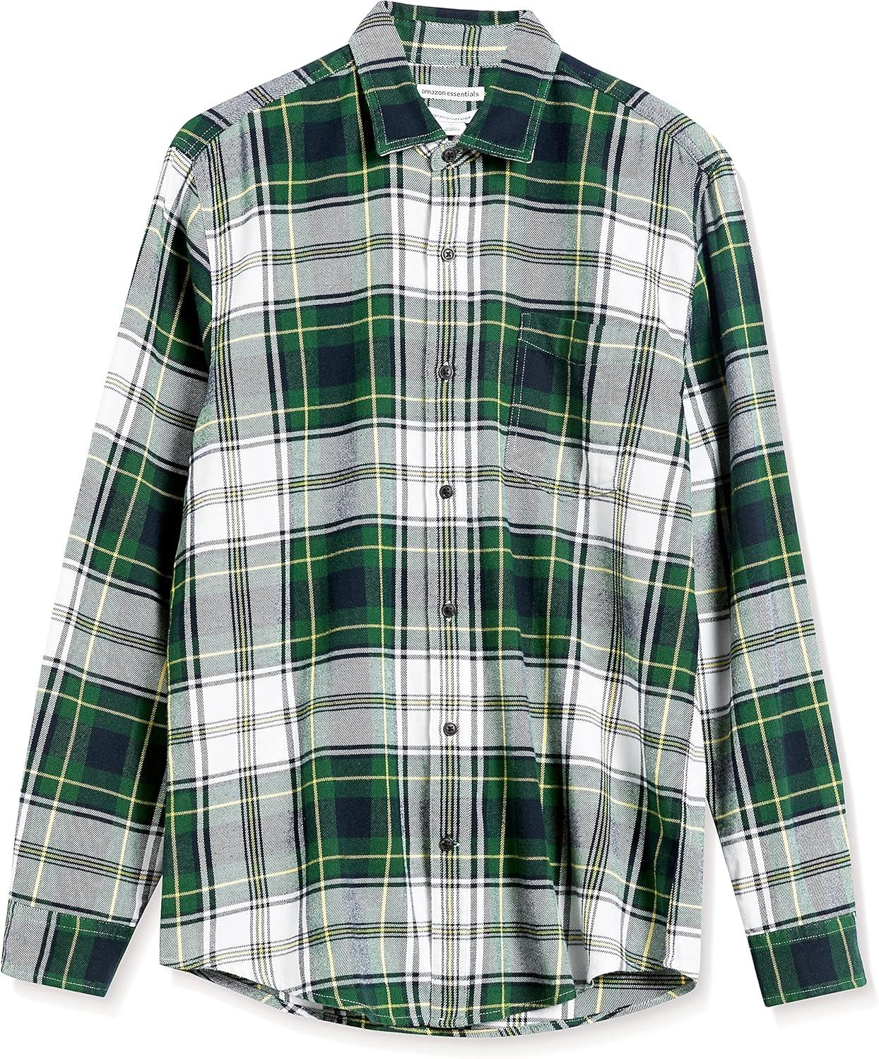 Amazon Essentials Men’s Long-Sleeve Flannel Shirt (Available in Big & Tall)(Green White Plaid)
