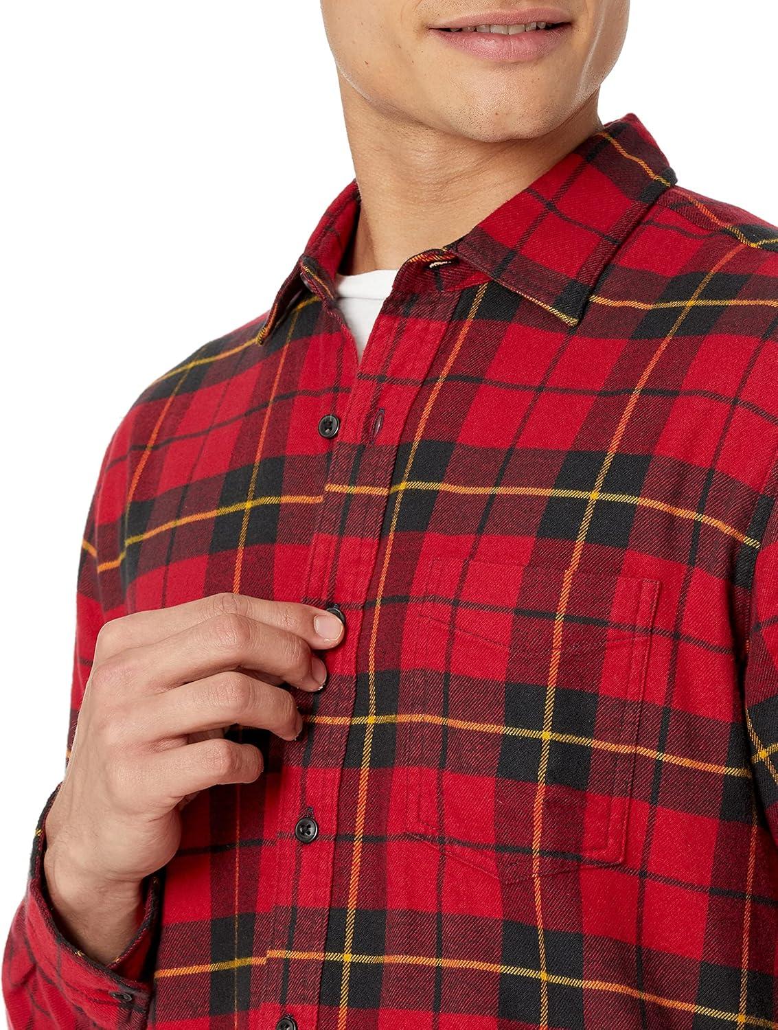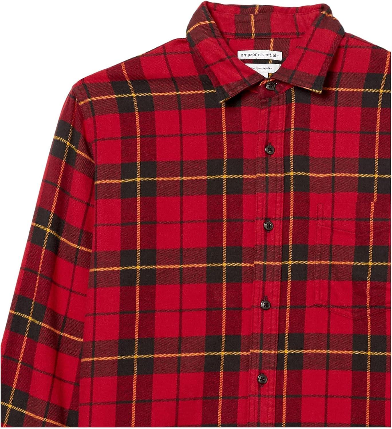 Amazon Essentials Men's Long-Sleeve Flannel Shirt - Discontinued Colors(Black Red Yellow Large Plaid)