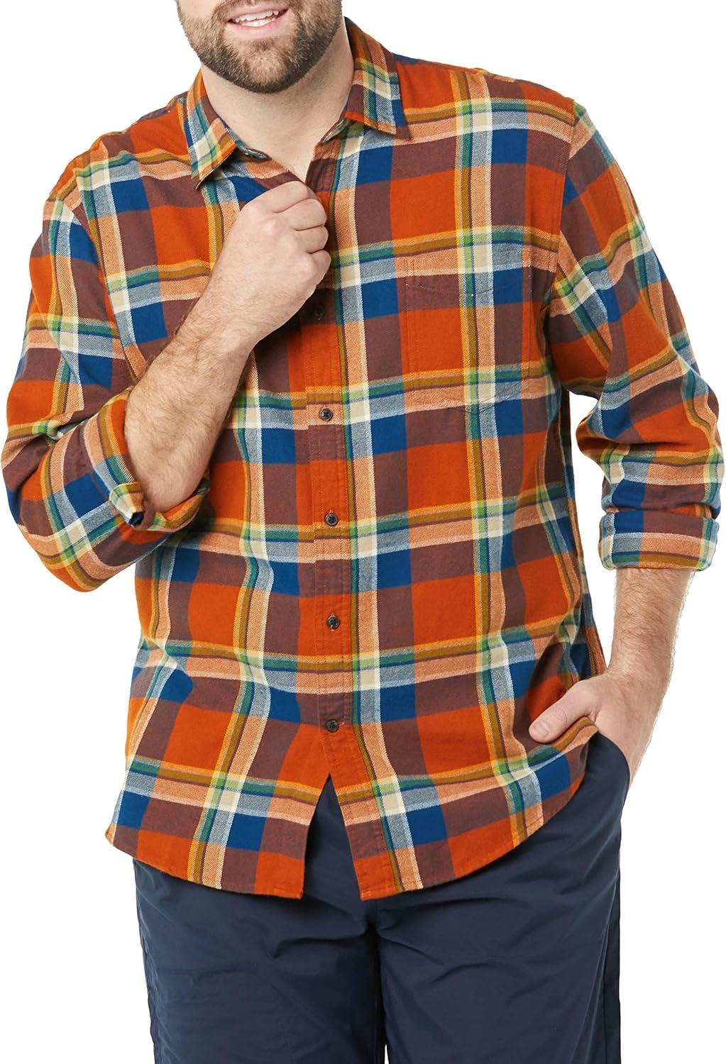 Amazon Essentials Men's Long-Sleeve Flannel Shirt - Discontinued Colors(Blue Rust Orange Plaid)
