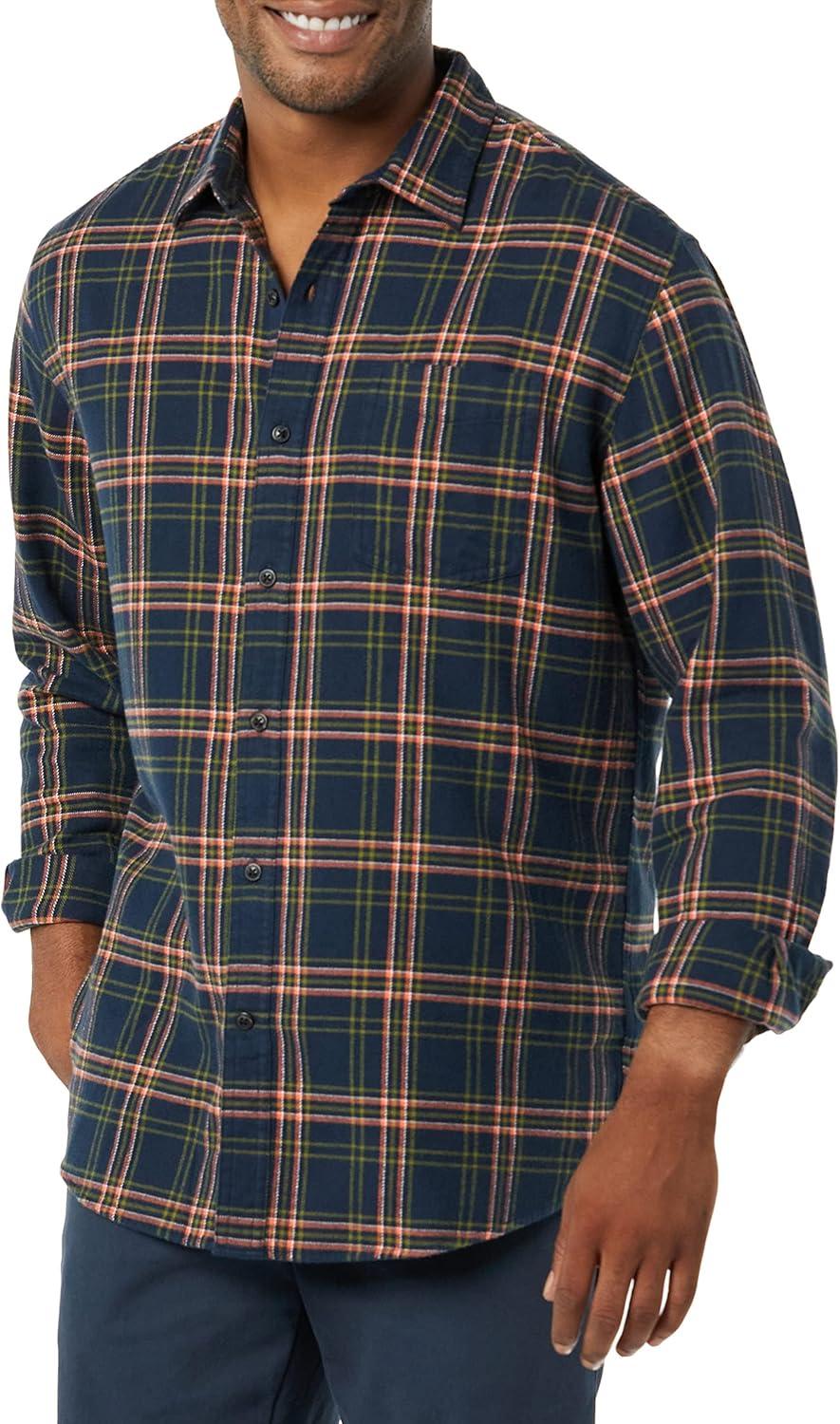 Amazon Essentials Men’s Long-Sleeve Flannel Shirt – Discontinued Colors(Dark Navy Plaid)