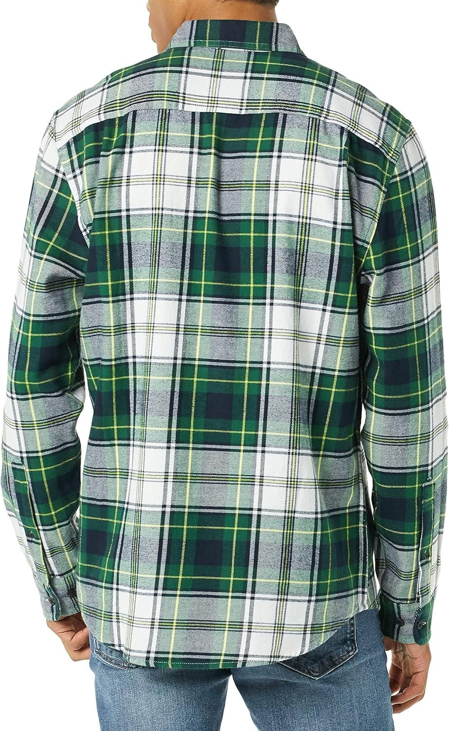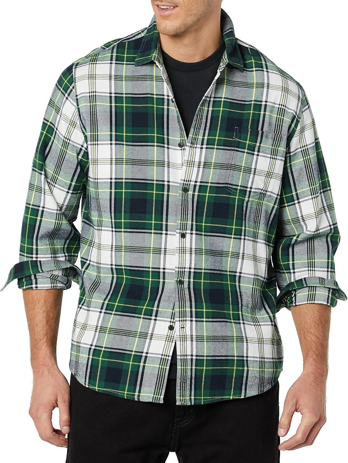 Amazon Essentials Men's Long-Sleeve Flannel Shirt - Discontinued Colors(Green White Plaid)