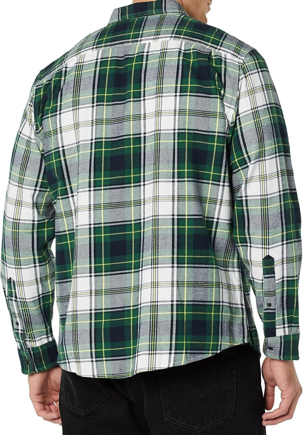 Amazon Essentials Men’s Long-Sleeve Flannel Shirt – Discontinued Colors(Green White Plaid)