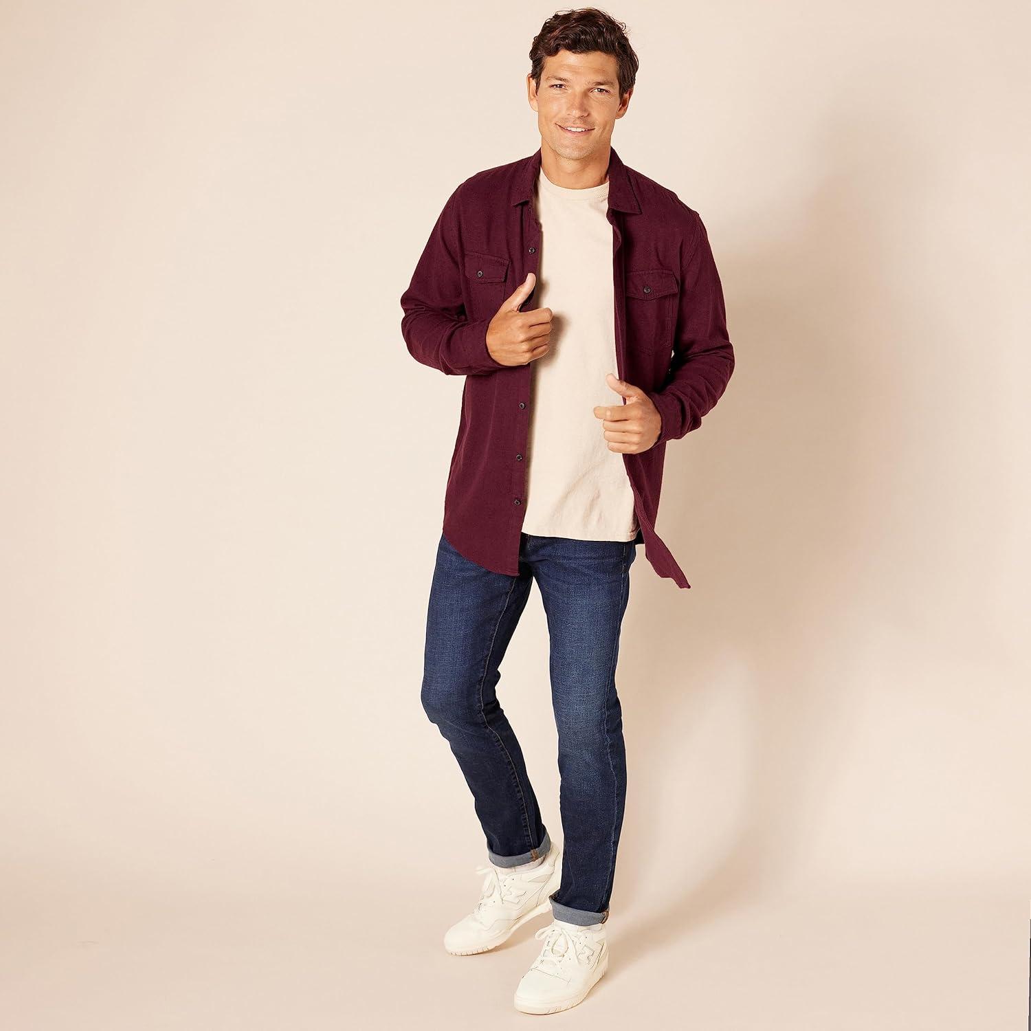 Amazon Essentials Men’s Long-Sleeve Flannel Shirt, Regular-Fit, Two Pockets(Burgundy Heather)