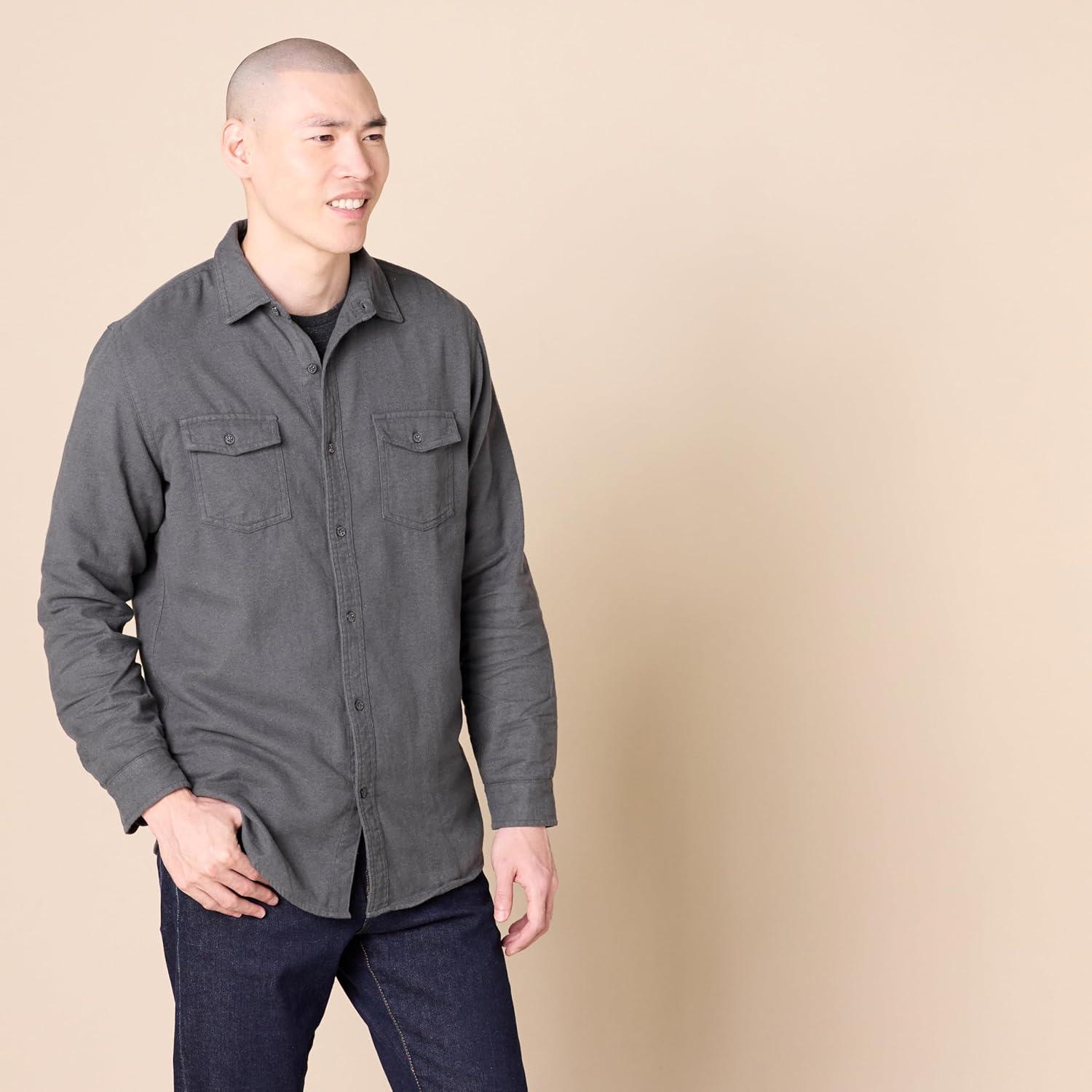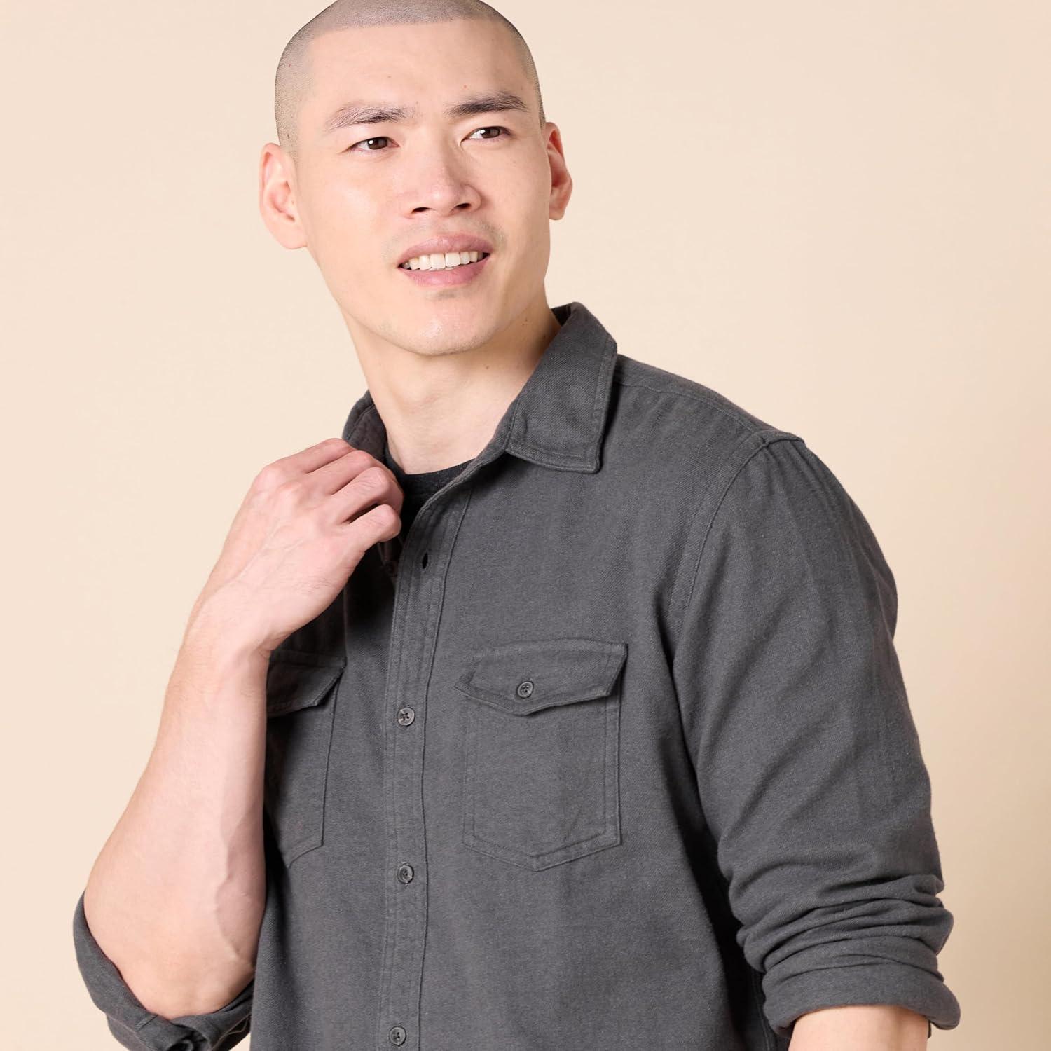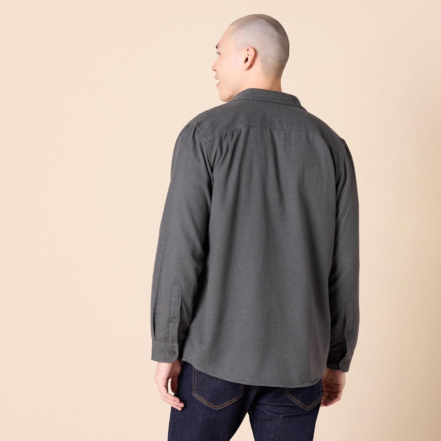 Amazon Essentials Men’s Long-Sleeve Flannel Shirt, Regular-Fit, Two Pockets(Charcoal Heather)
