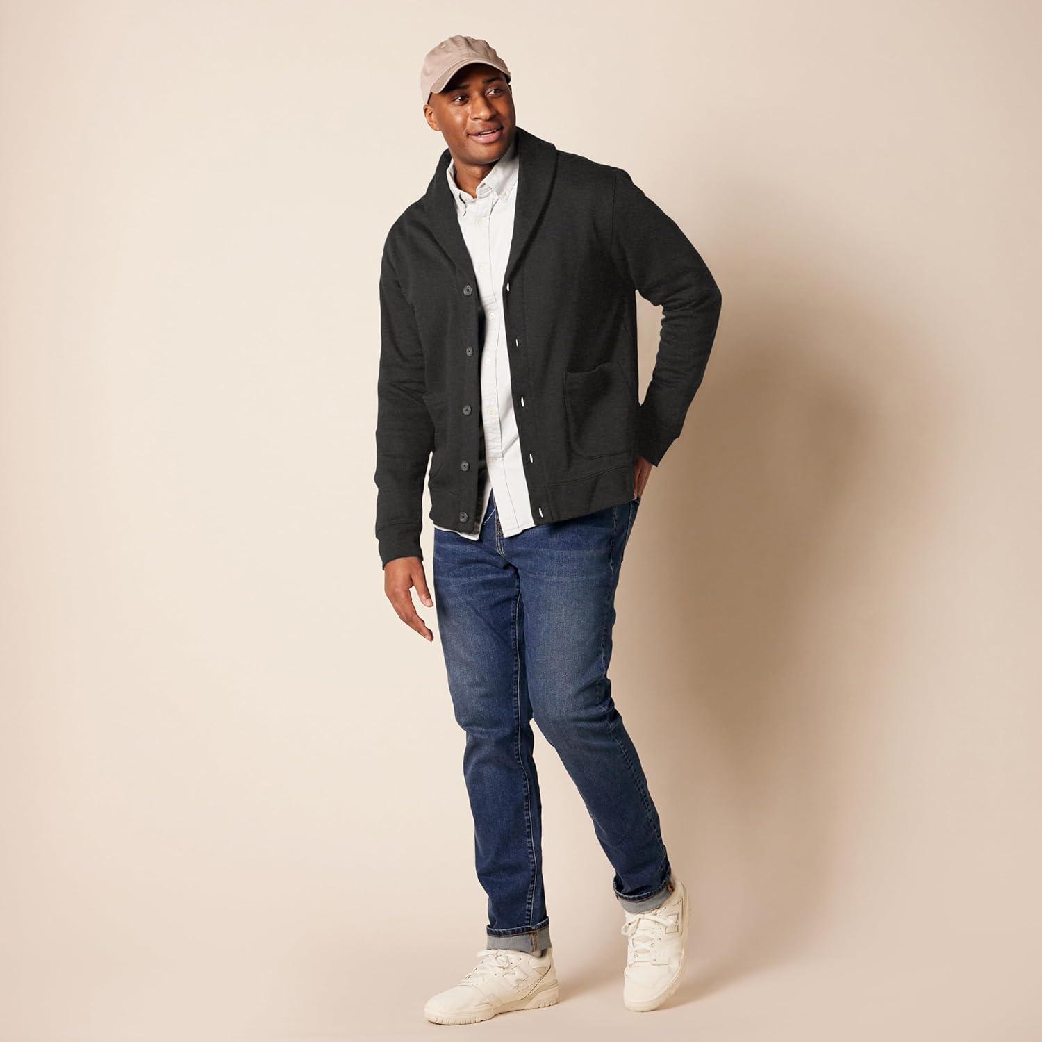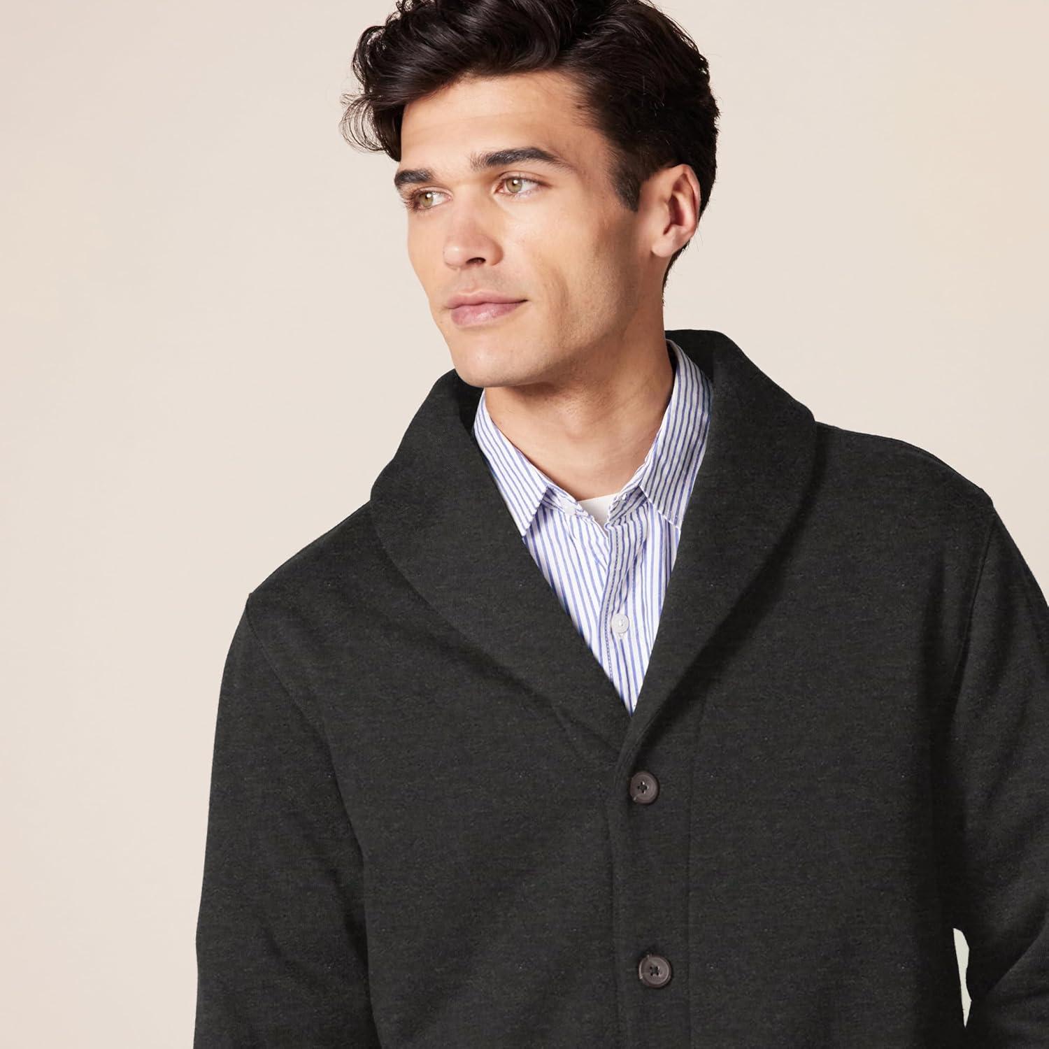 Amazon Essentials Men's Long-Sleeve Fleece Shawl-Collar Cardigan(Charcoal Heather)