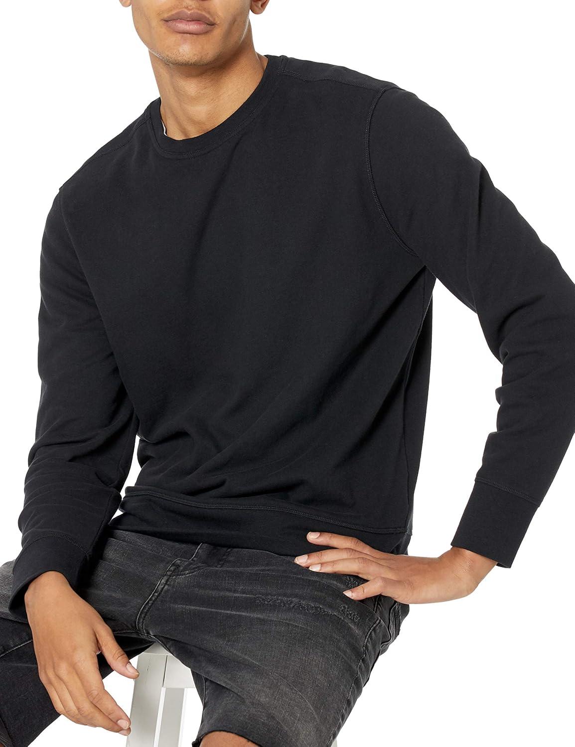 Amazon Essentials Men's Long-Sleeve Lightweight Fleece French Terry Crewneck Sweatshirt(Black)