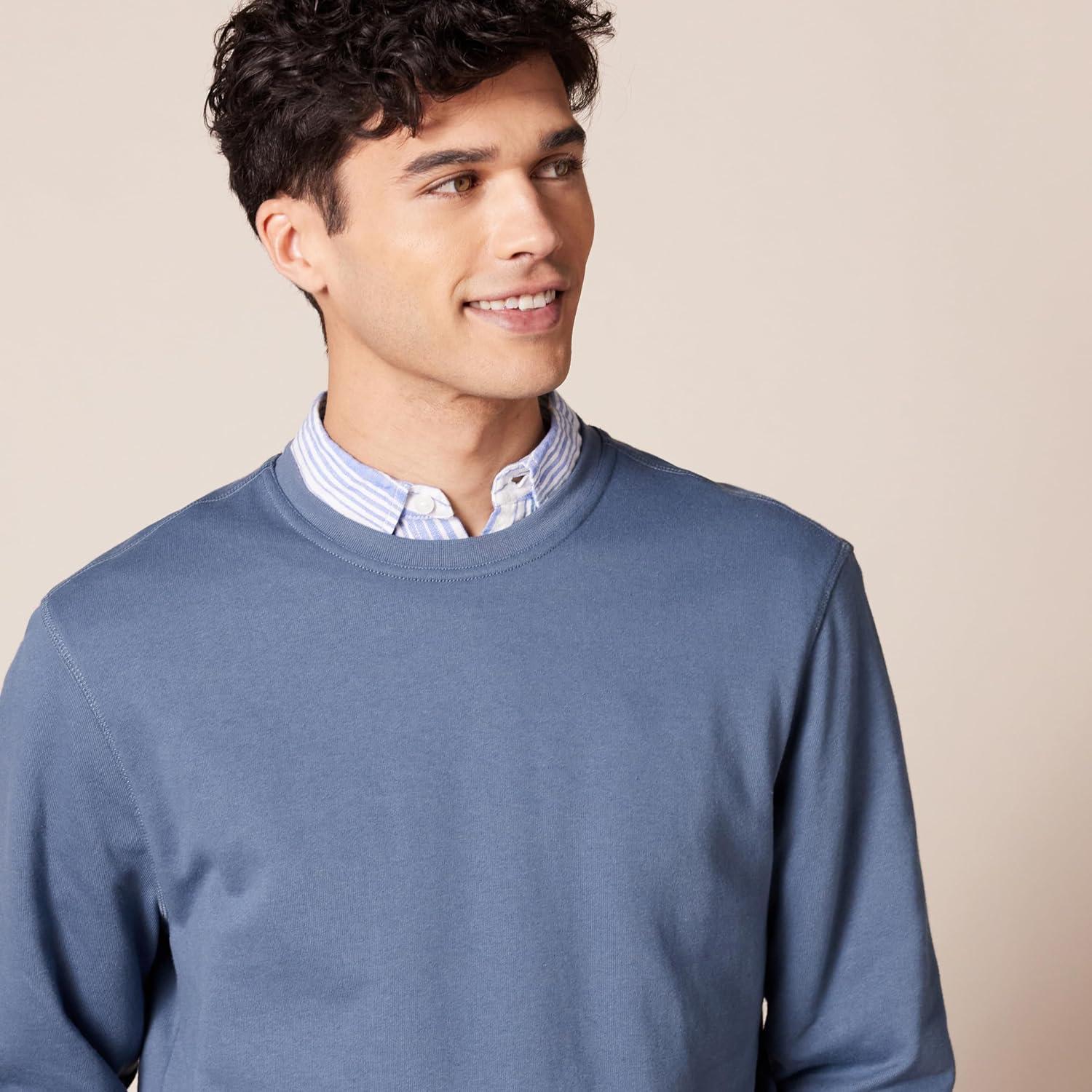 Amazon Essentials Men’s Long-Sleeve Lightweight Fleece French Terry Crewneck Sweatshirt(Indigo)