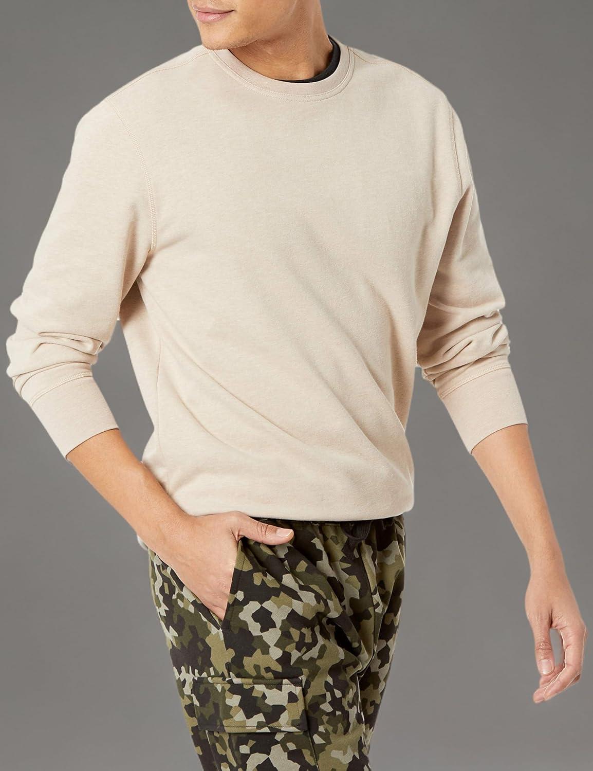 Amazon Essentials Men's Long-Sleeve Lightweight Fleece French Terry Crewneck Sweatshirt(Oatmeal Heather)