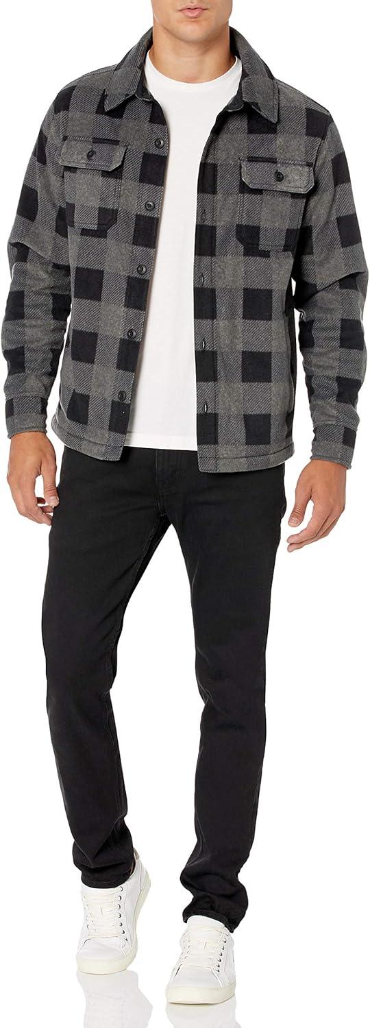 Amazon Essentials Men's Long-Sleeve Polar Fleece Shirt Jacket for Winter(Black Charcoal Buffalo Plaid)