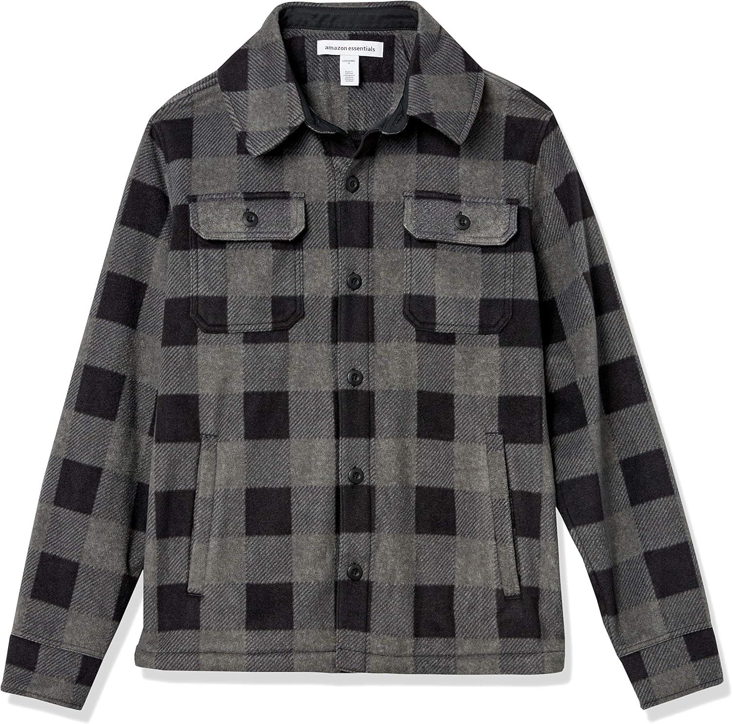 Amazon Essentials Men’s Long-Sleeve Polar Fleece Shirt Jacket for Winter(Charcoal Heather)