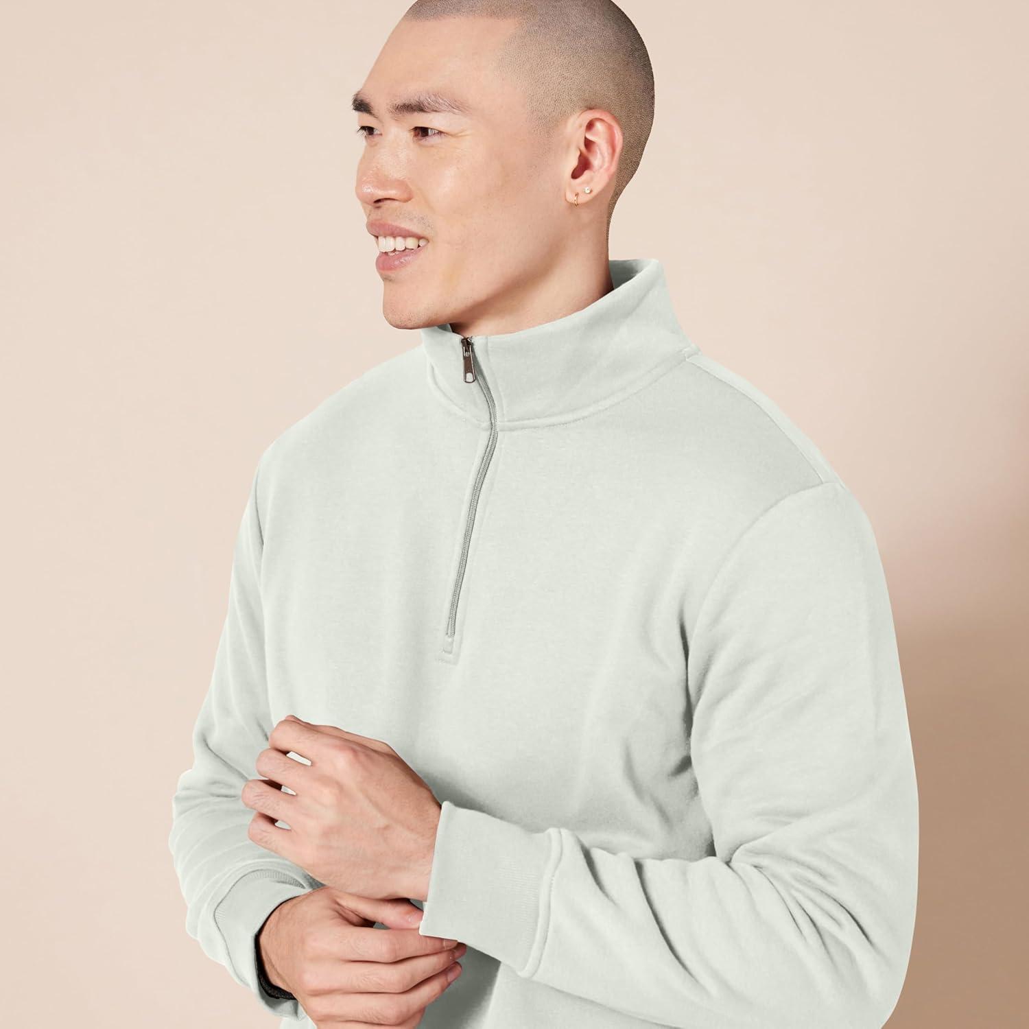 Amazon Essentials Men’s Long-Sleeve Quarter-Zip Pullover Fleece Sweatshirt(Light Grey)