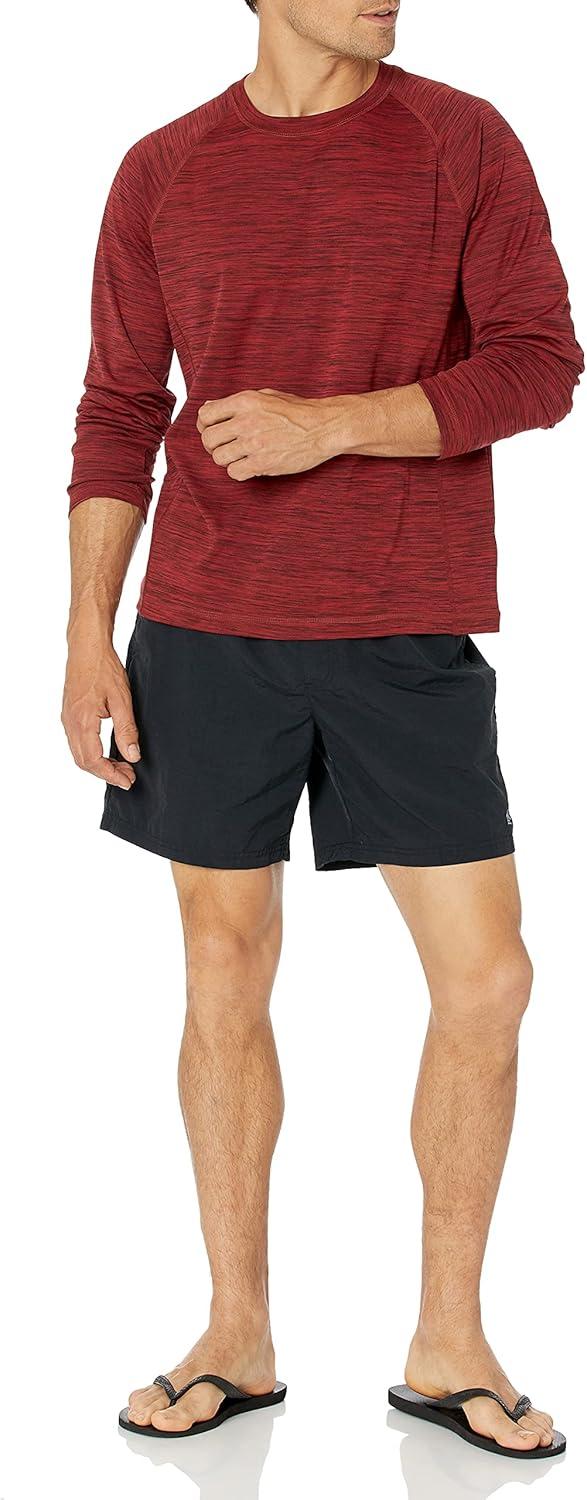 Amazon Essentials Men’s Long-Sleeve Quick-Dry UPF 50 Swim Tee(Red Heather)