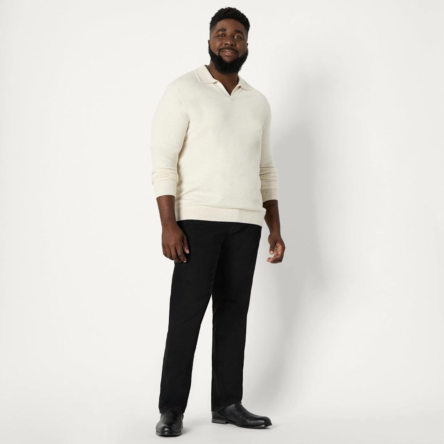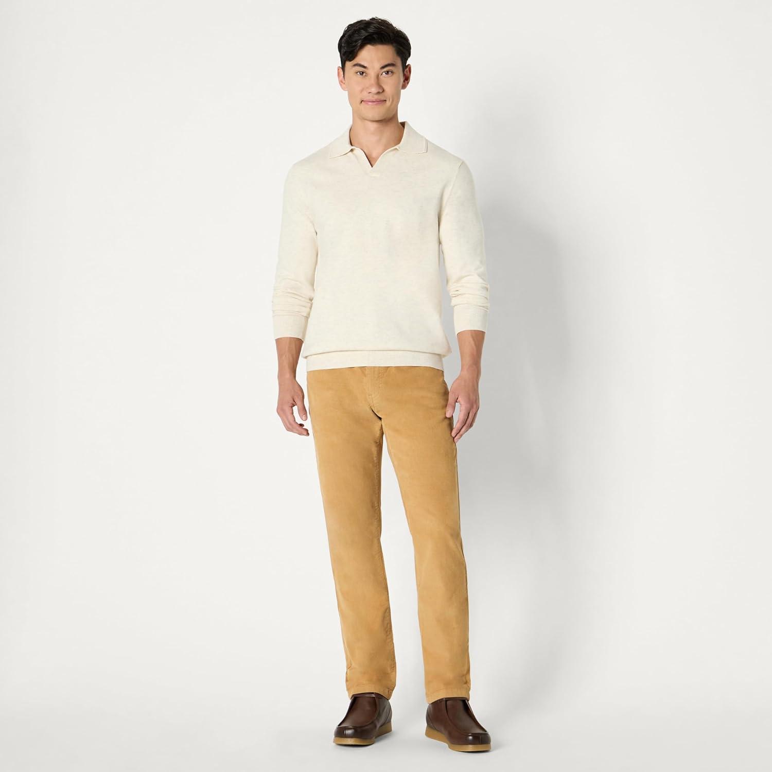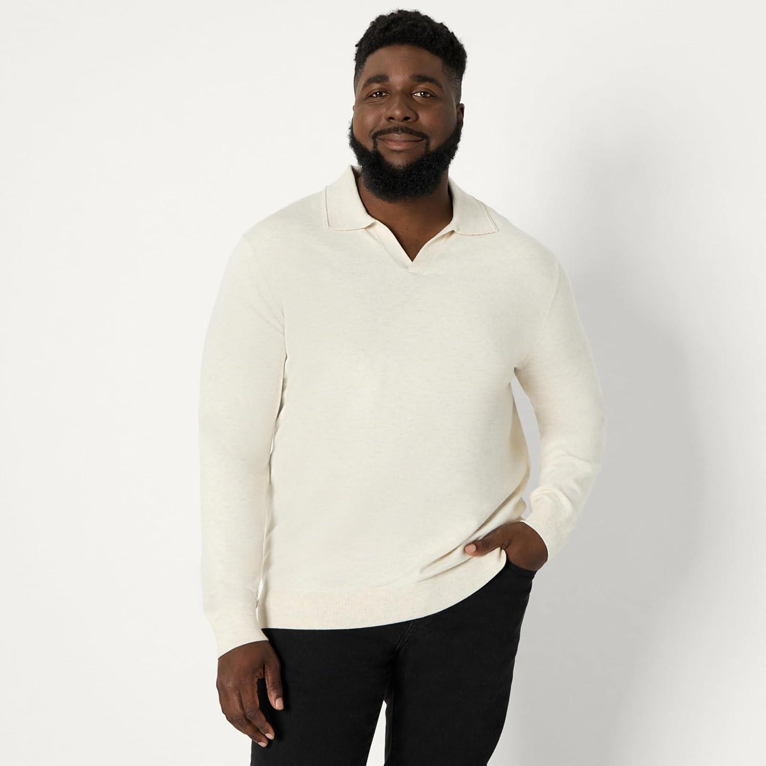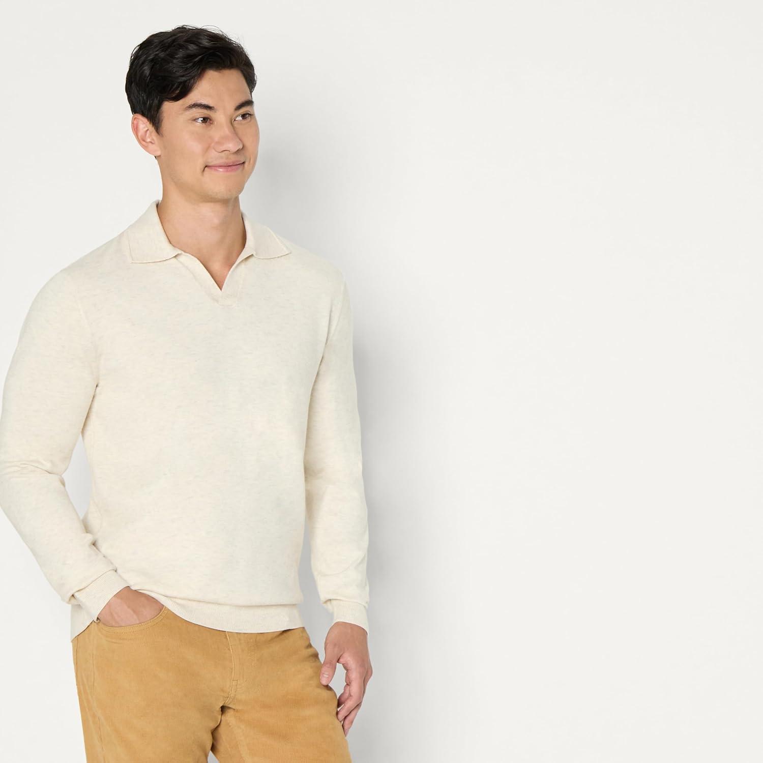 Amazon Essentials Men’s Long Sleeve Regular Fit Knit Polo Sweater(Sand Heather)