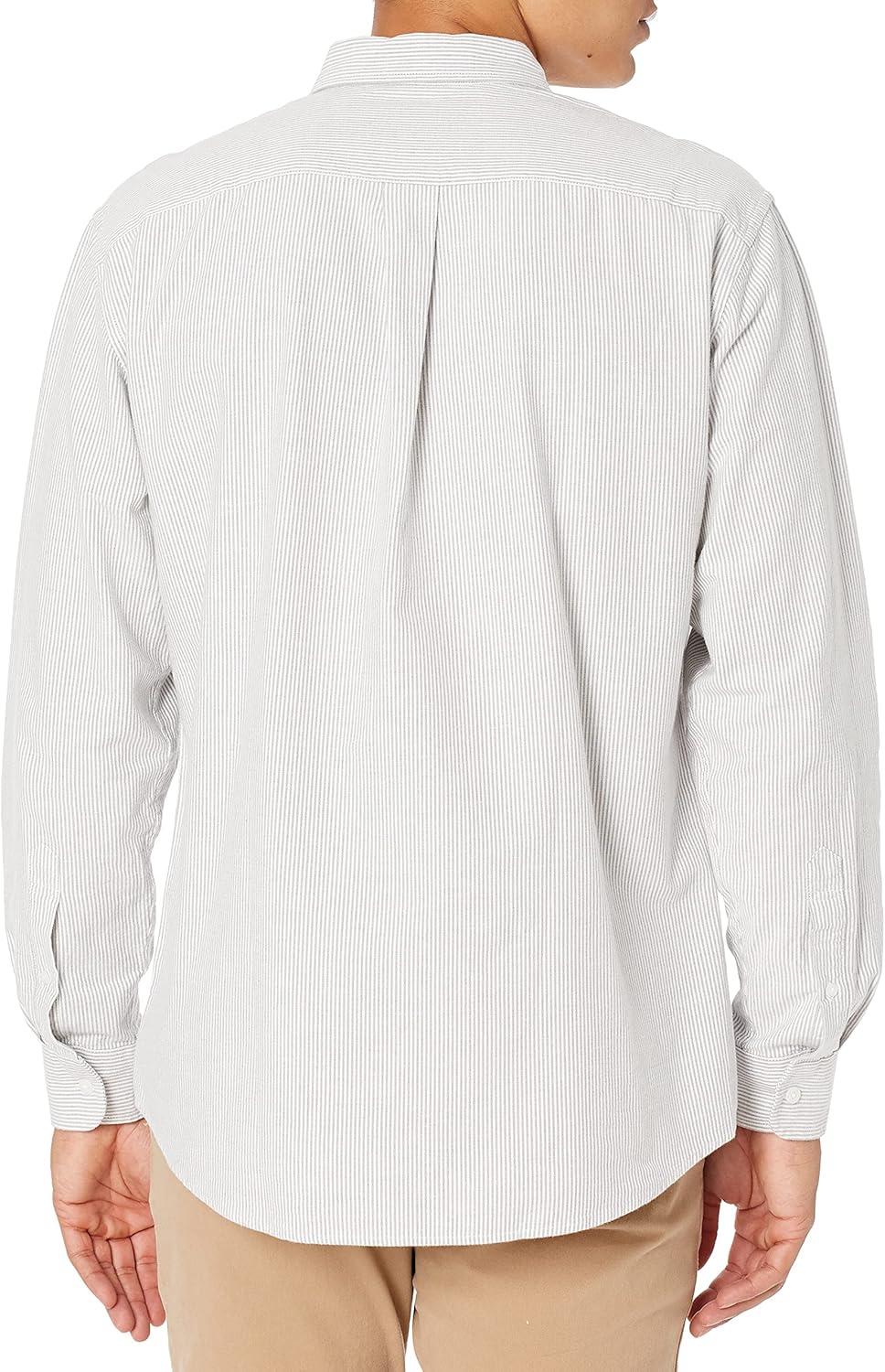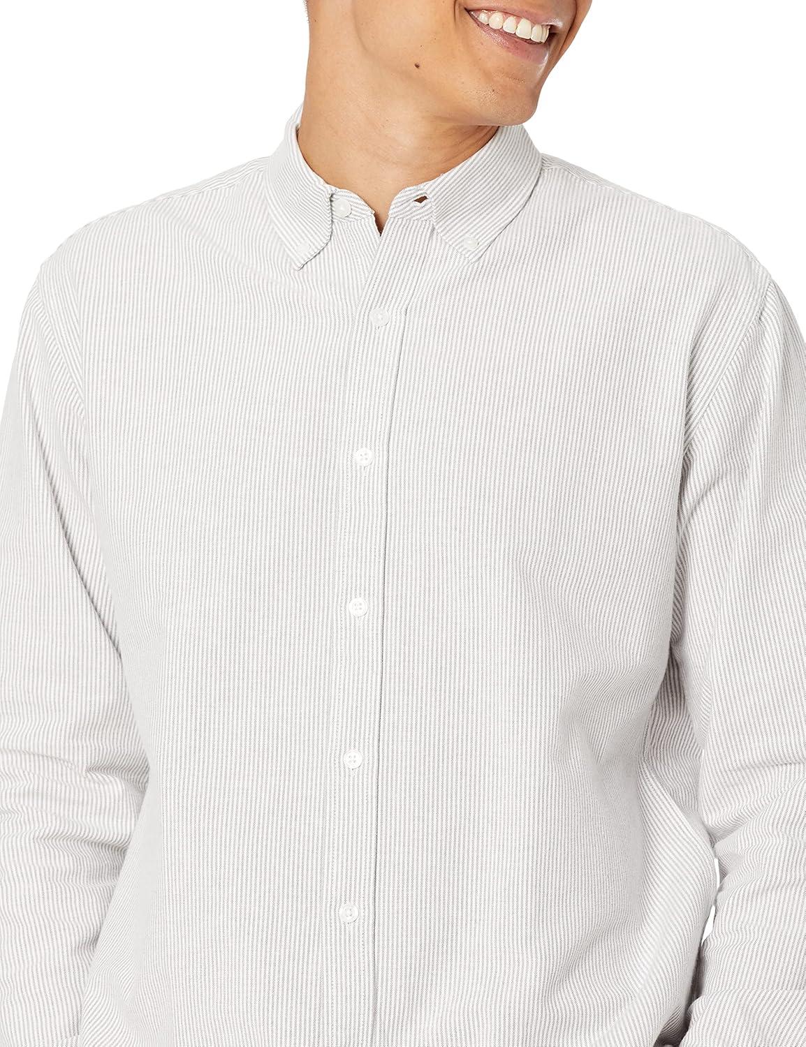 Amazon Essentials Men's Long-Sleeve Regular-Fit Stretch Oxford Shirt (Available in Big & Tall)(Light Grey White Vertical Stripe)