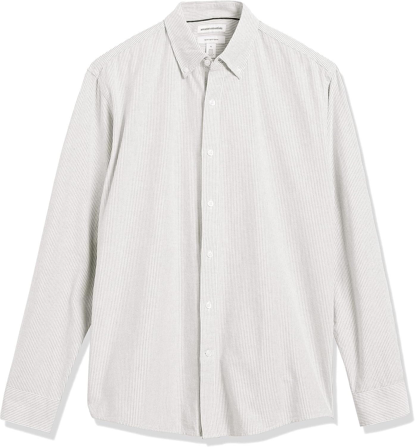 Amazon Essentials Men’s Long-Sleeve Regular-Fit Stretch Oxford Shirt (Available in Big & Tall)(Light Grey White Vertical Stripe)