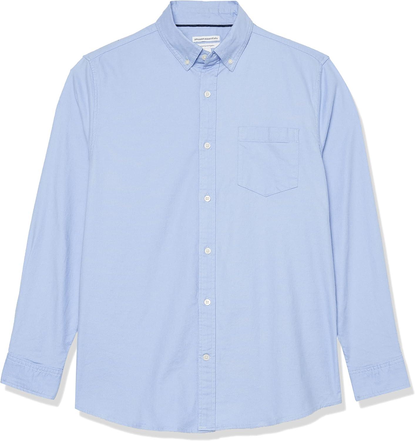 Amazon Essentials Men’s Long Sleeve Shirt – Regular-Fit, Pocket Stretch Oxford (Available in Big & Tall)(Powder Blue)