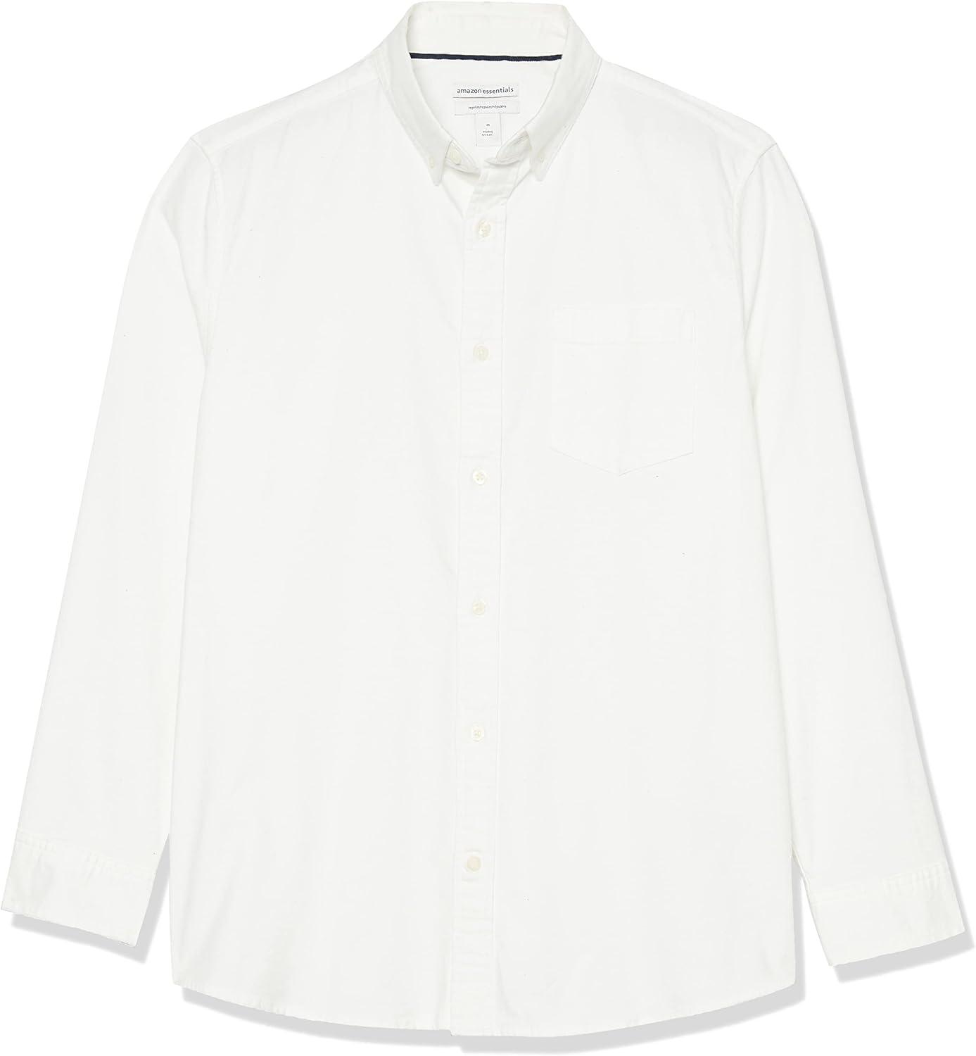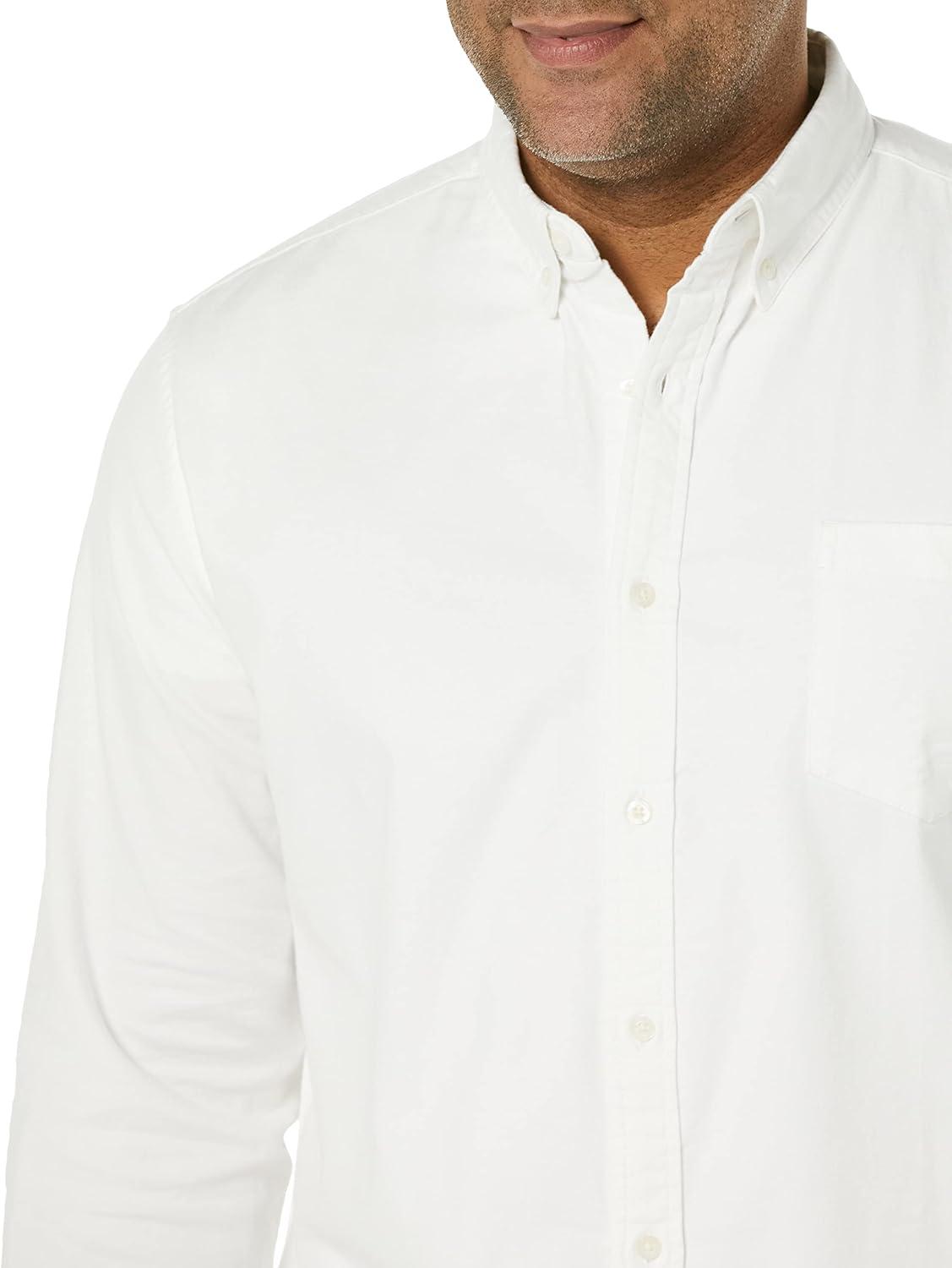 Amazon Essentials Men’s Long Sleeve Shirt – Regular-Fit, Pocket Stretch Oxford (Available in Big & Tall)(White)