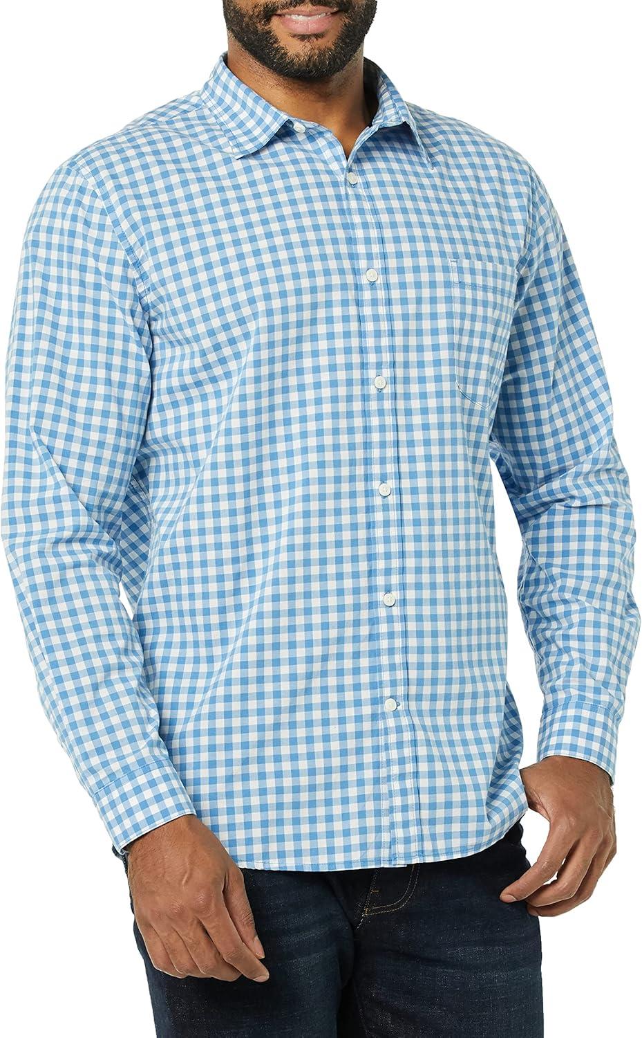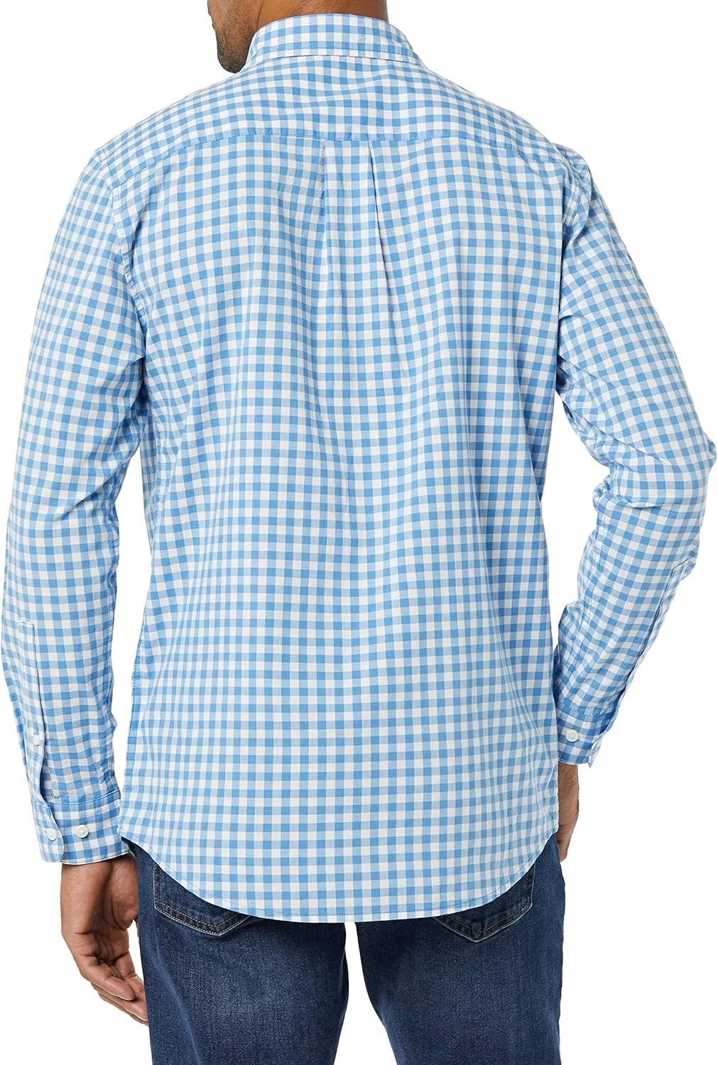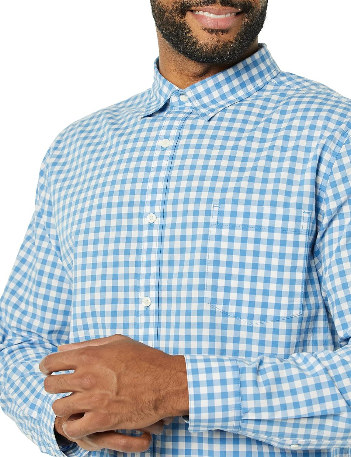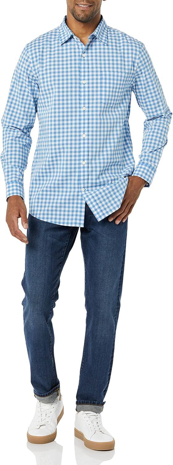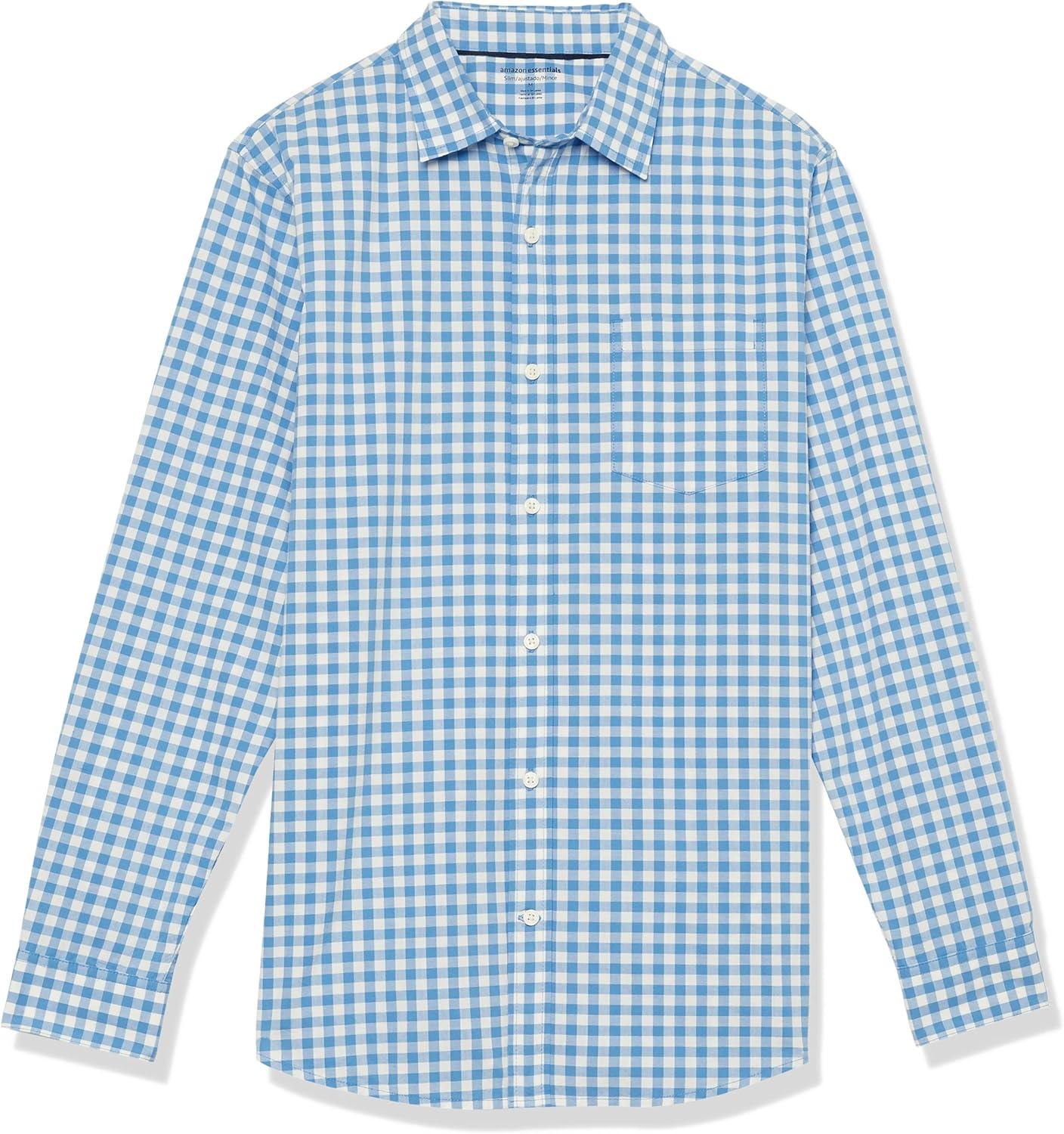 Amazon Essentials Men’s Long-Sleeve Slim-Fit Stretch Poplin Shirt(Light Blue White Gingham)