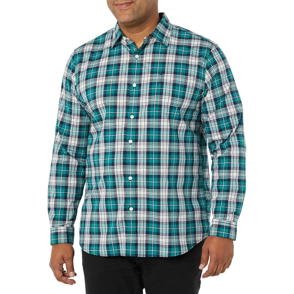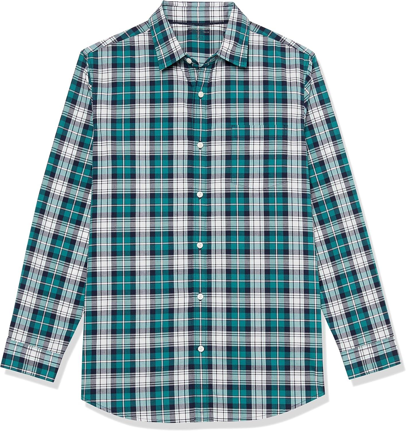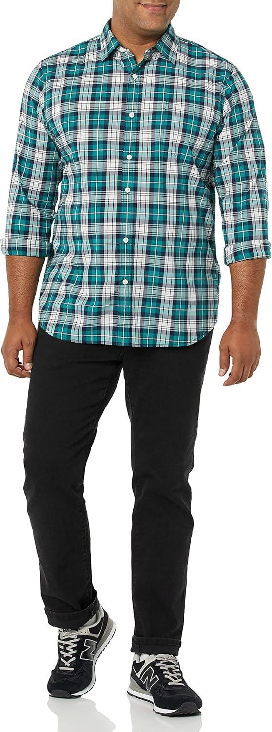 Amazon Essentials Men’s Long-Sleeve Slim-Fit Stretch Poplin Shirt(Teal Blue White Plaid)