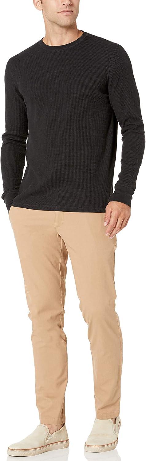 Amazon Essentials Men's Long Sleeve Slim-Fit Waffle Shirt(Black)