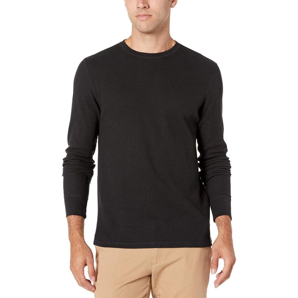 Amazon Essentials Men’s Long Sleeve Slim-Fit Waffle Shirt(Black)