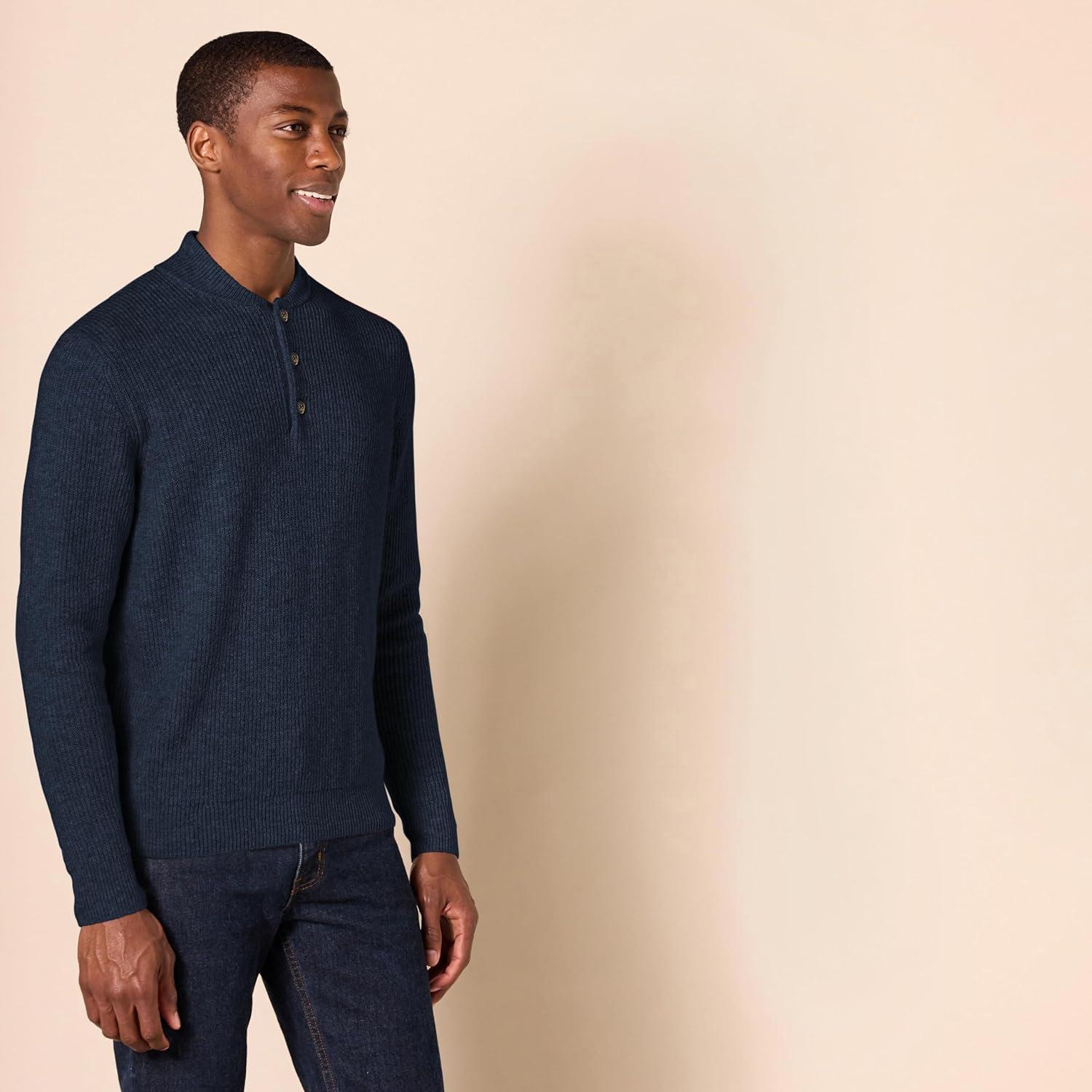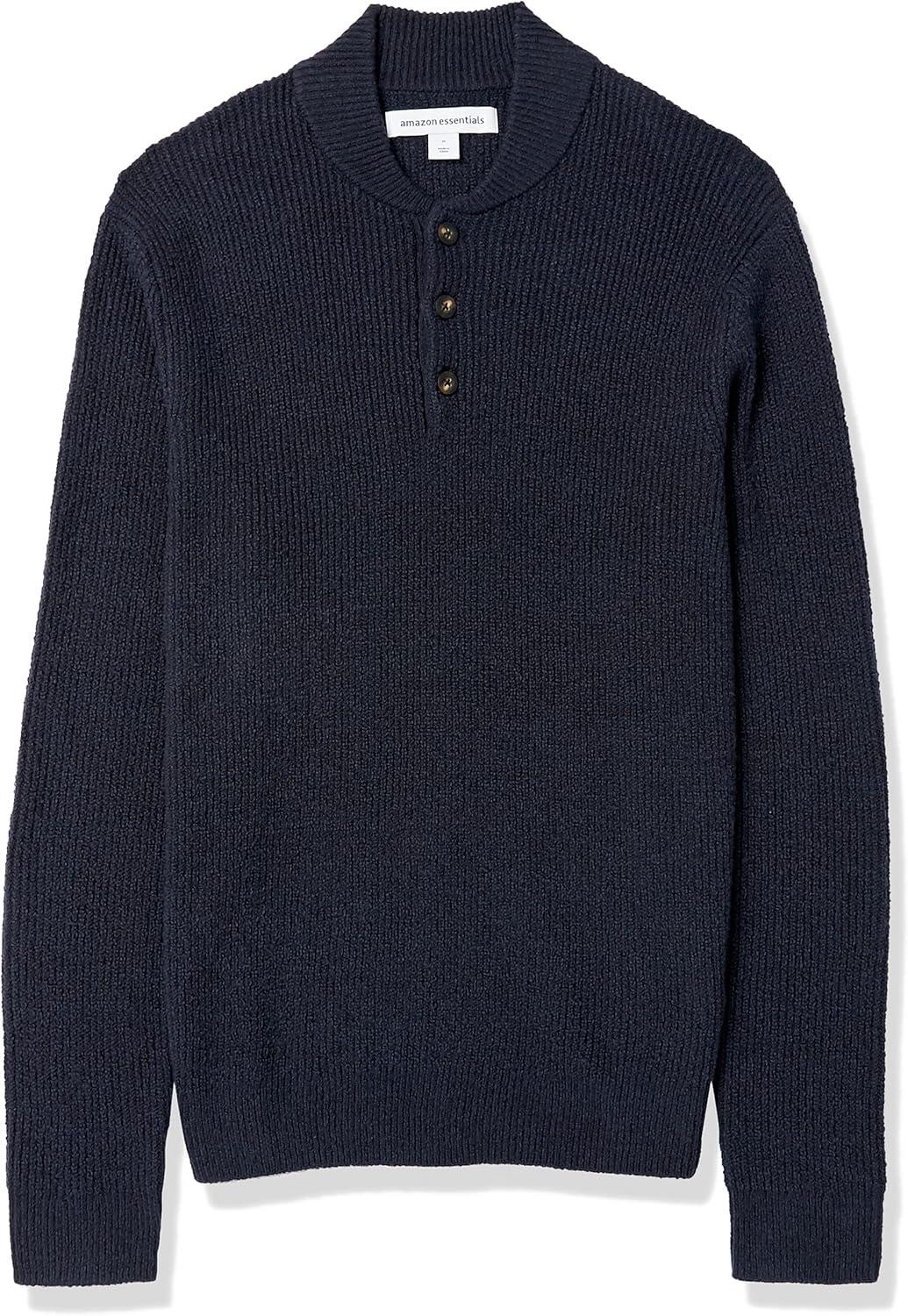 Amazon Essentials Men’s Long-Sleeve Soft Touch Henley Sweater(Navy)
