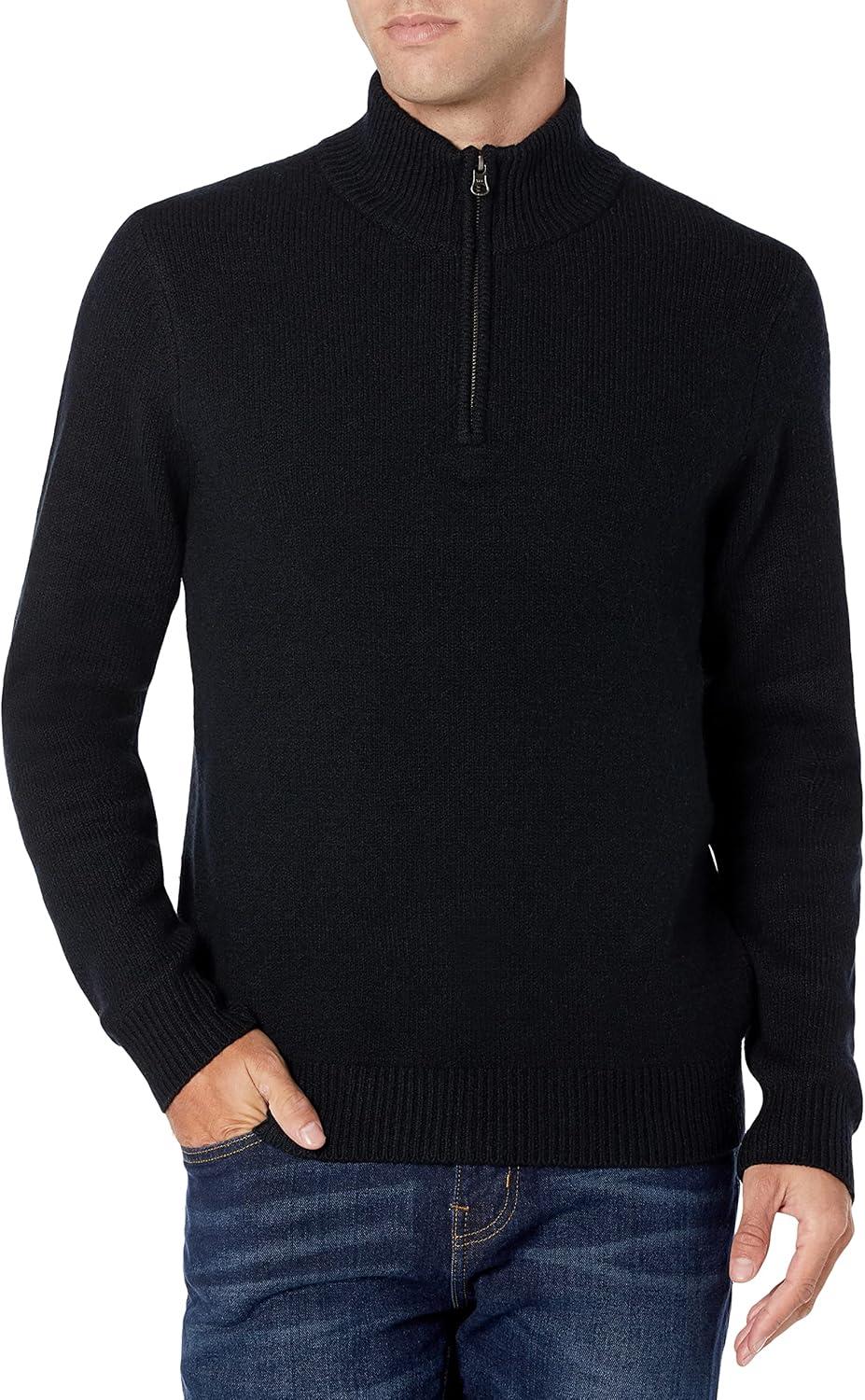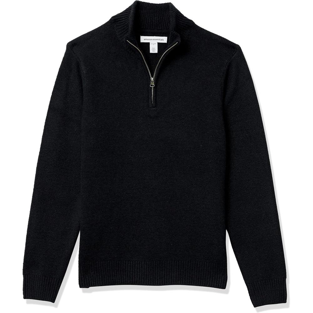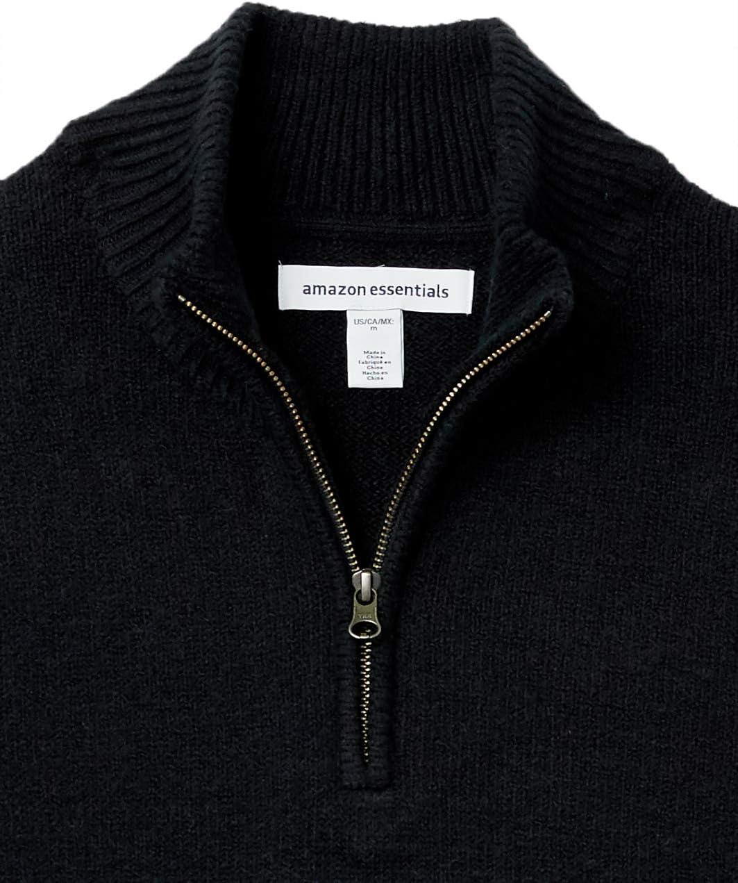 Amazon Essentials Men’s Long-Sleeve Soft Touch Quarter-Zip Sweater(Black)