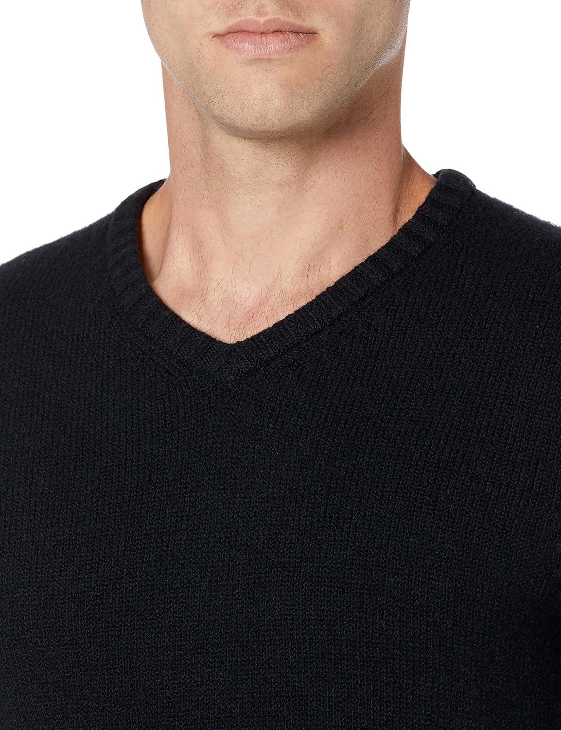 Amazon Essentials Men's Long-Sleeve Soft Touch V-Neck Sweater(Black)
