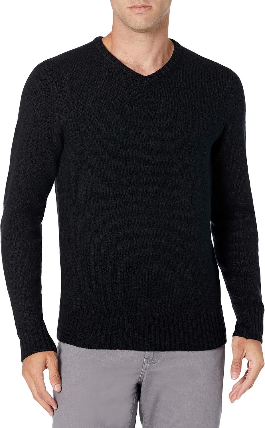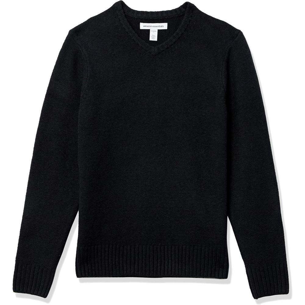 Amazon Essentials Men’s Long-Sleeve Soft Touch V-Neck Sweater(Black)