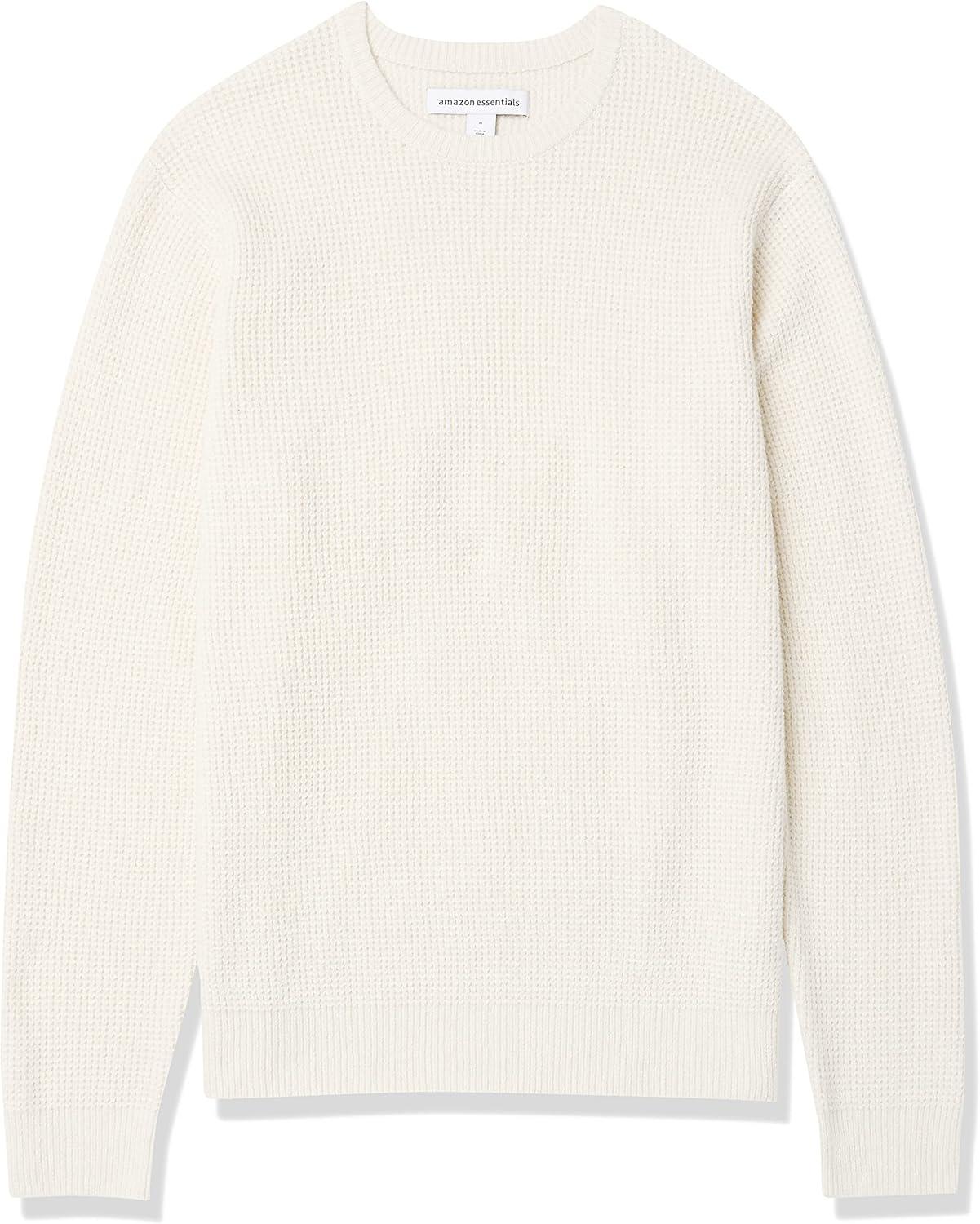 Amazon Essentials Men’s Long-Sleeve Soft Touch Waffle Stitch Crewneck Sweater(Ivory)