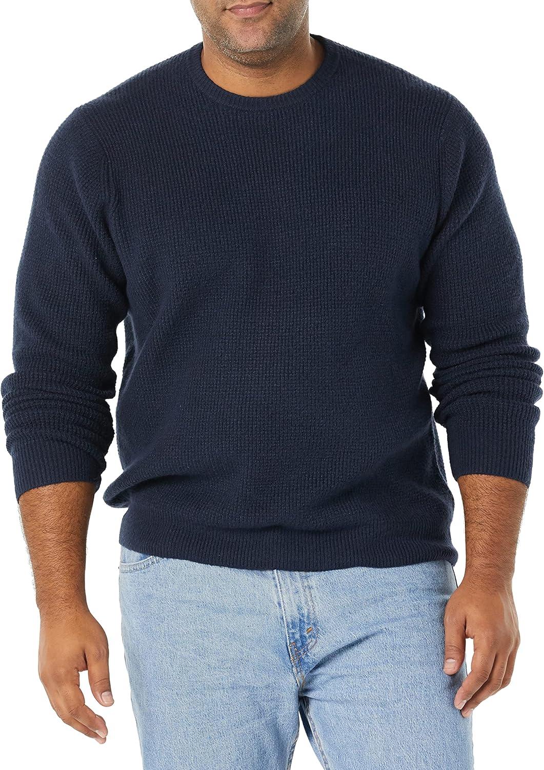 Amazon Essentials Men’s Long-Sleeve Soft Touch Waffle Stitch Crewneck Sweater(Navy)