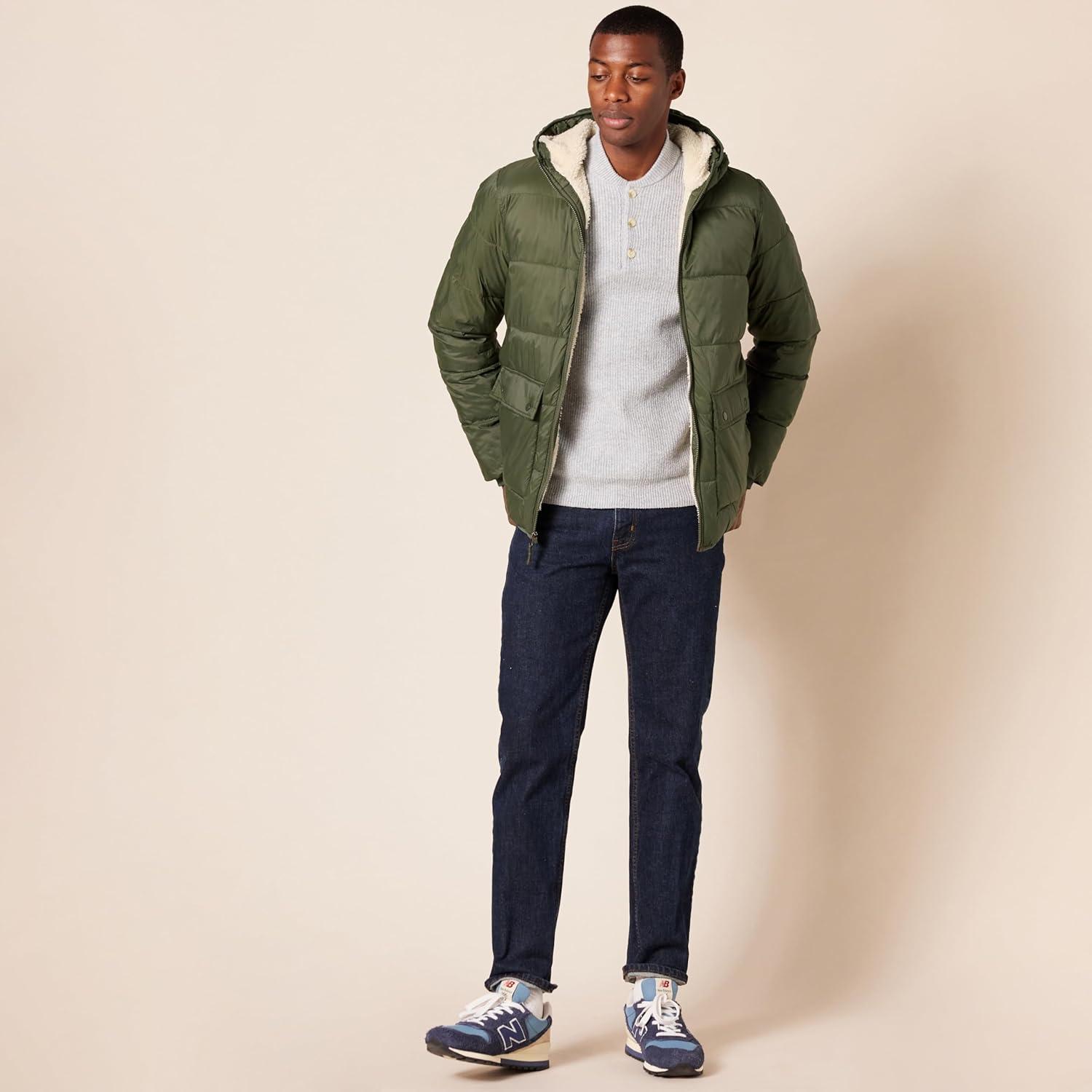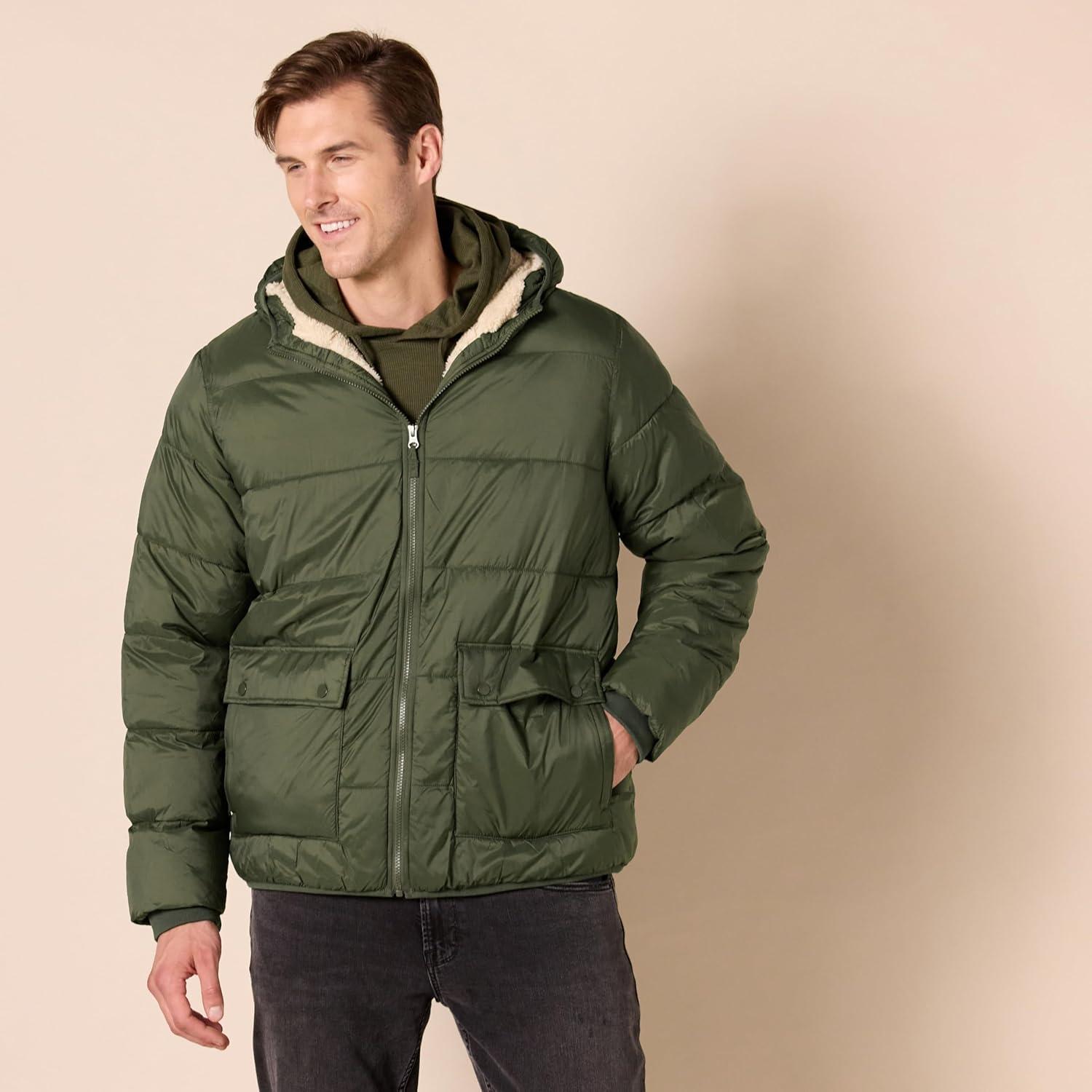 Amazon Essentials Men’s Long-Sleeve Water-Resistant Sherpa-Lined Puffer Jacket(Dark Olive)
