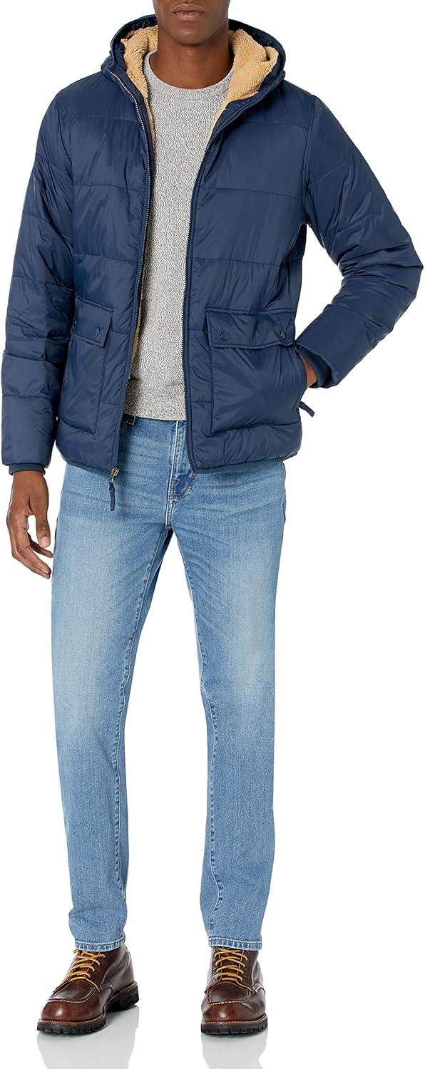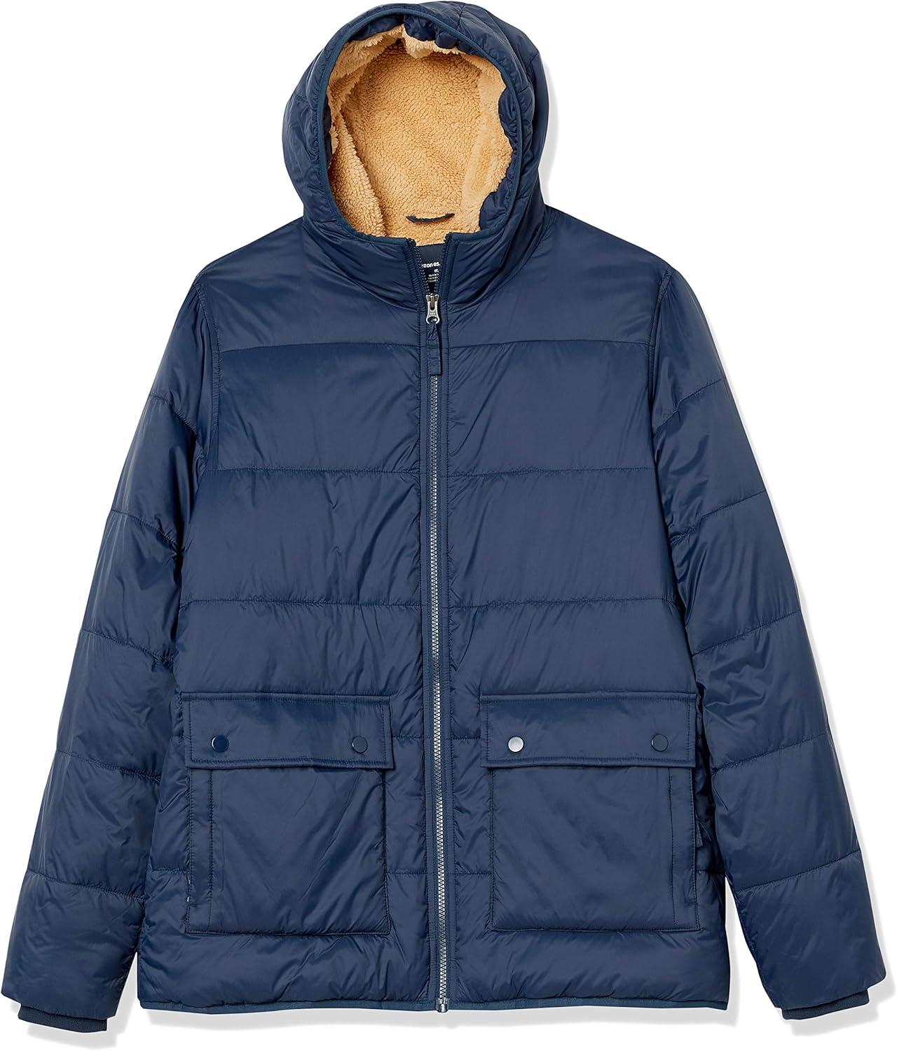 Amazon Essentials Men's Long-Sleeve Water-Resistant Sherpa-Lined Puffer Jacket(Navy)