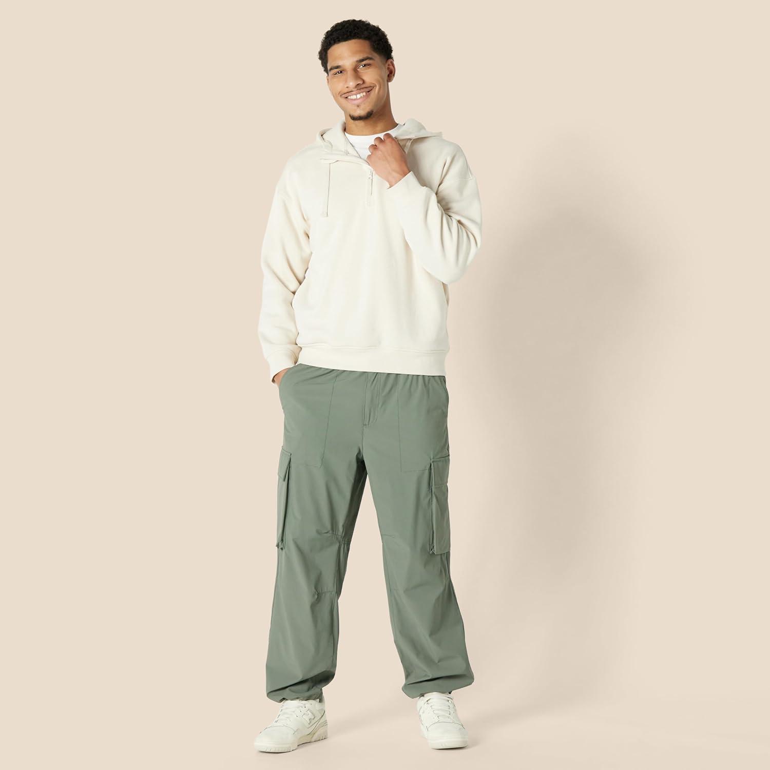Amazon Essentials Men’s Loose-Fit Lightweight Stretch Parachute Pant(Dark Olive)