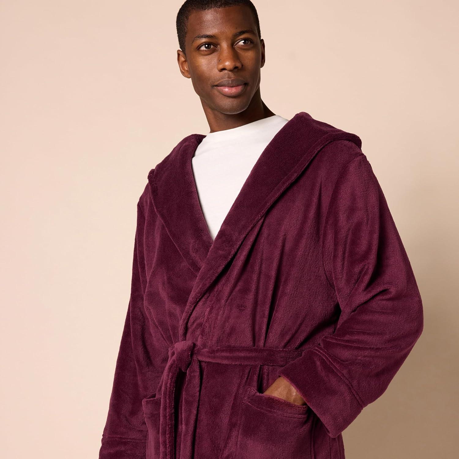 Amazon Essentials Men’s Mid-Length Plush Robe(Dark Burgundy)
