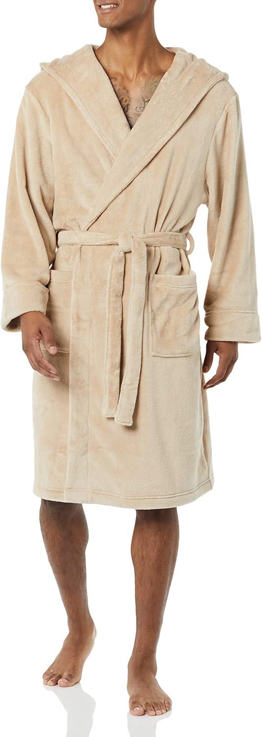 Amazon Essentials Men's Mid-Length Plush Robe(Taupe)