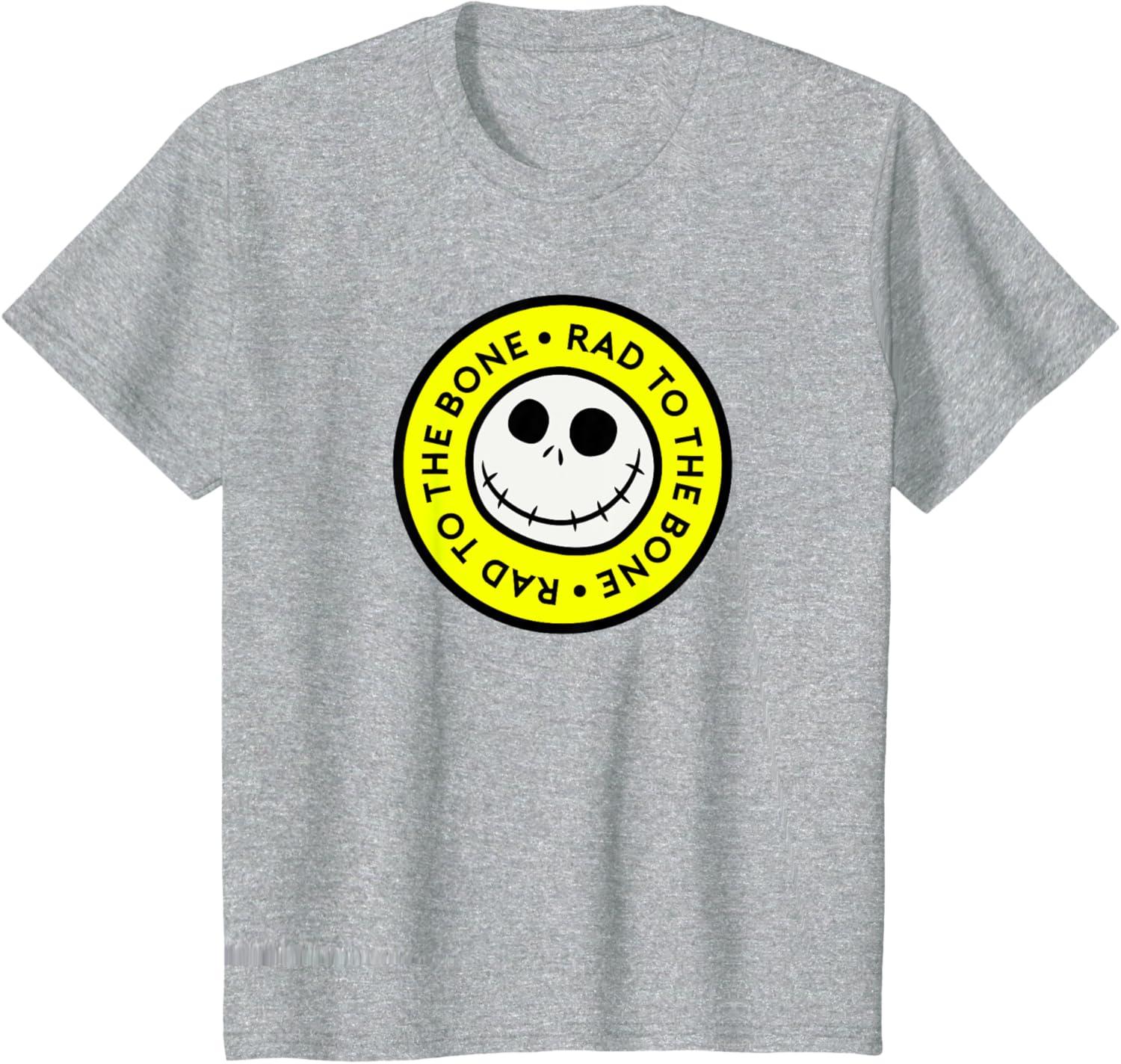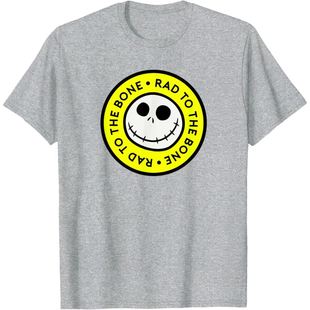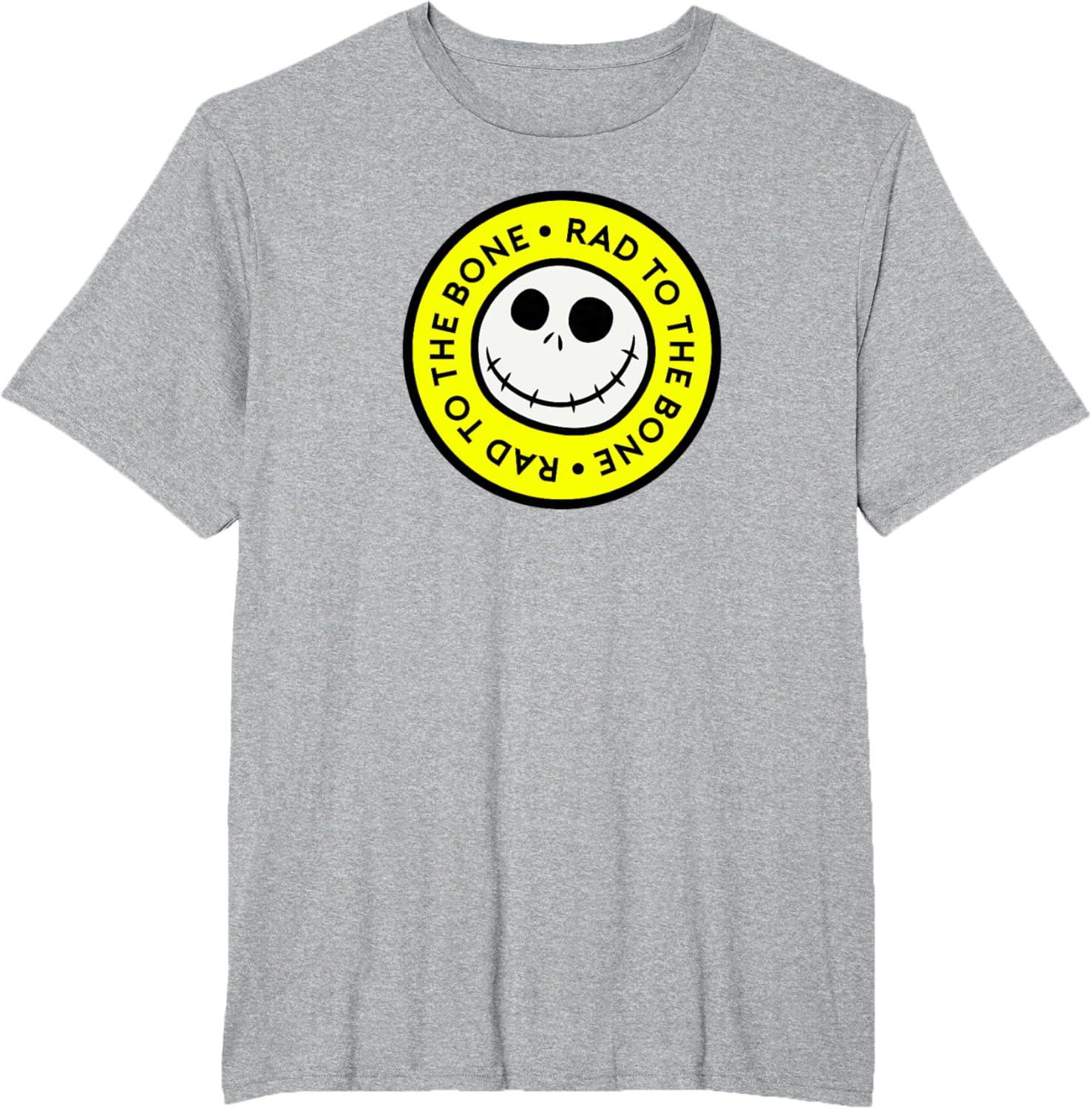 Amazon Essentials Men’s Nightmare Before Christmas Jack Circle Rad To The Bone T-Shirt, Black Graphic Print, Small(Heather Grey)