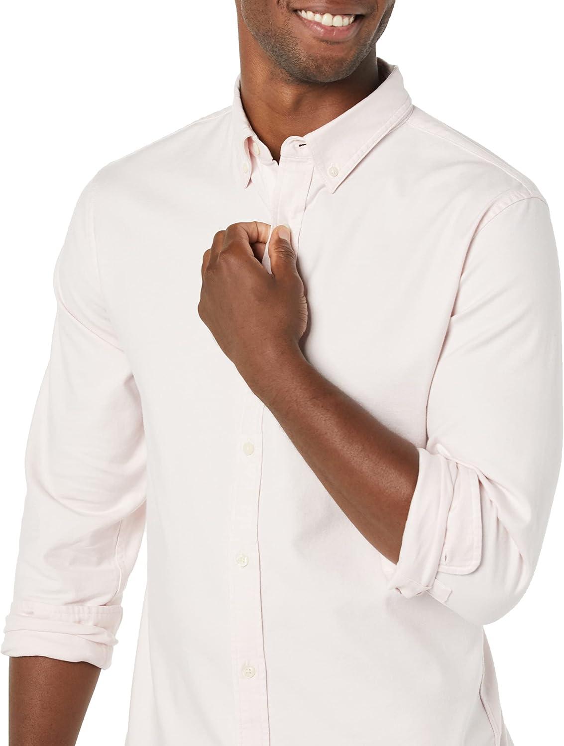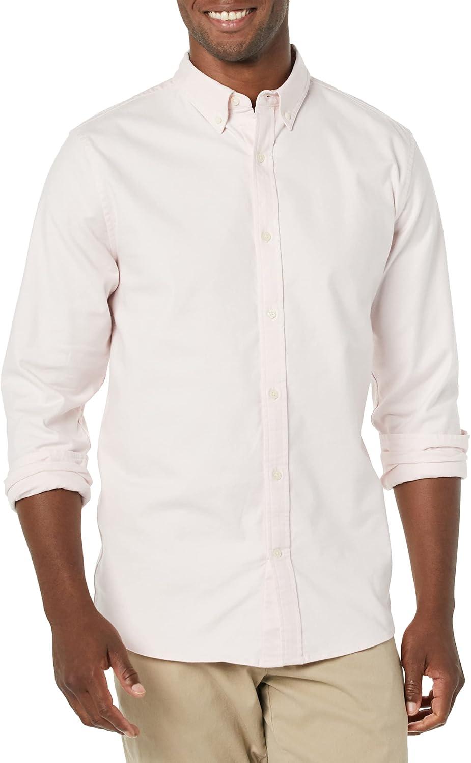Amazon Essentials Men’s Oxford Shirt, Slim-Fit Stretch, Long-Sleeve, Button Up(Pale Pink)
