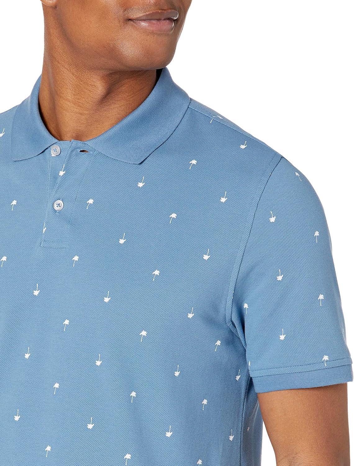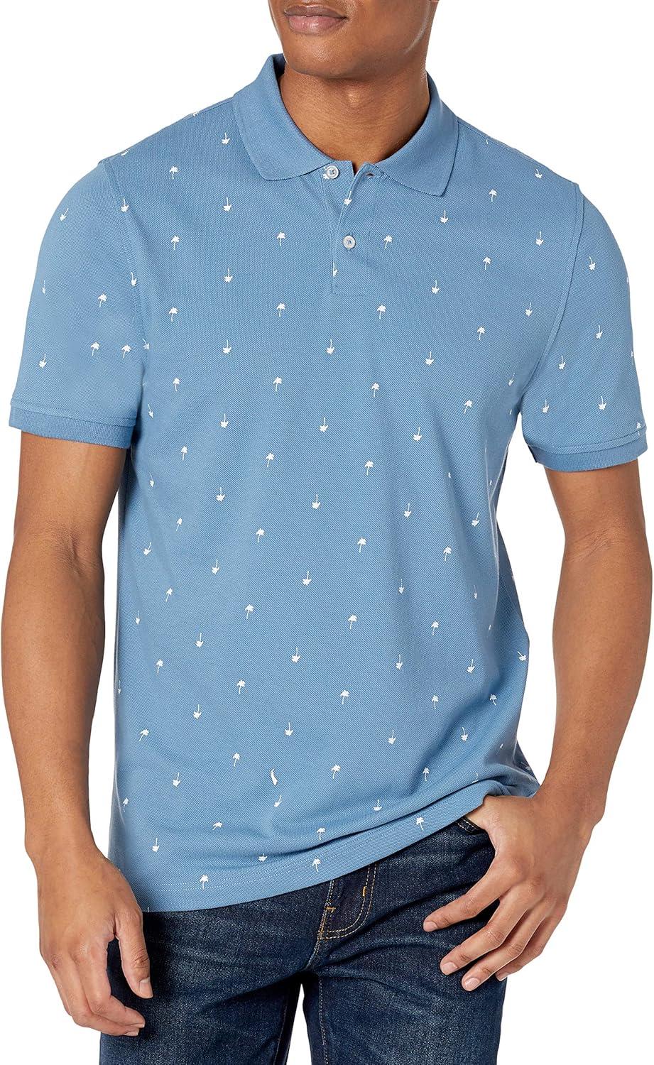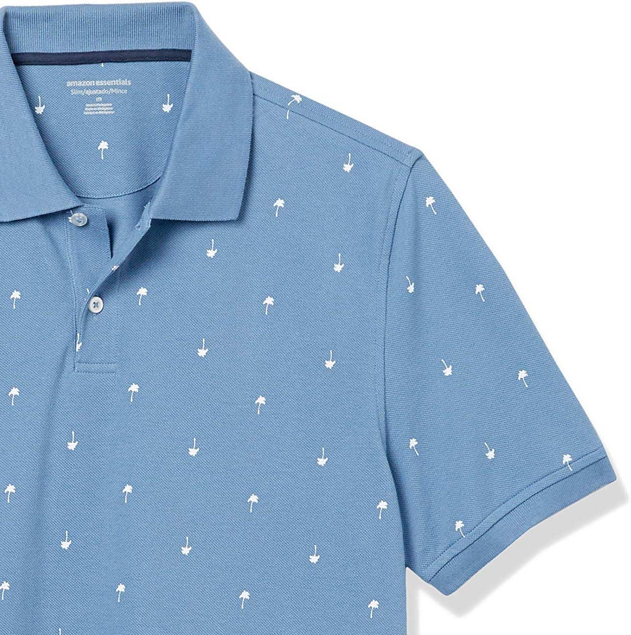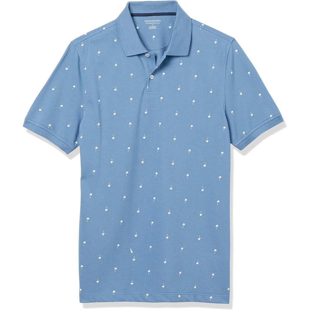 Amazon Essentials Men’s Polo Shirts Short Sleeve, Slim-Fit Cotton Pique(Blue Palm Tree Print)