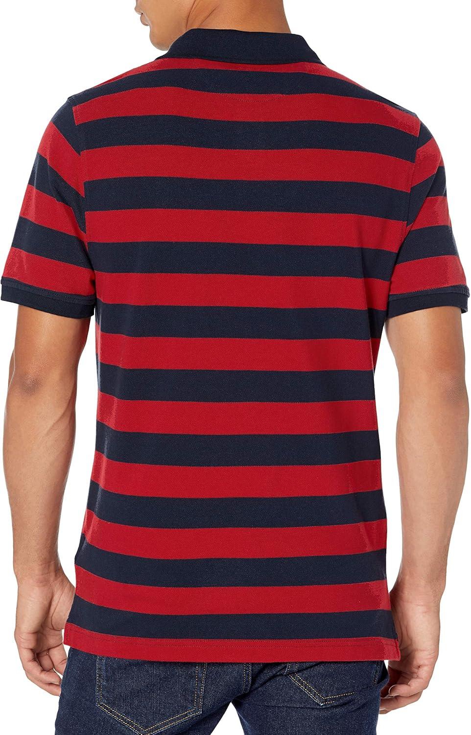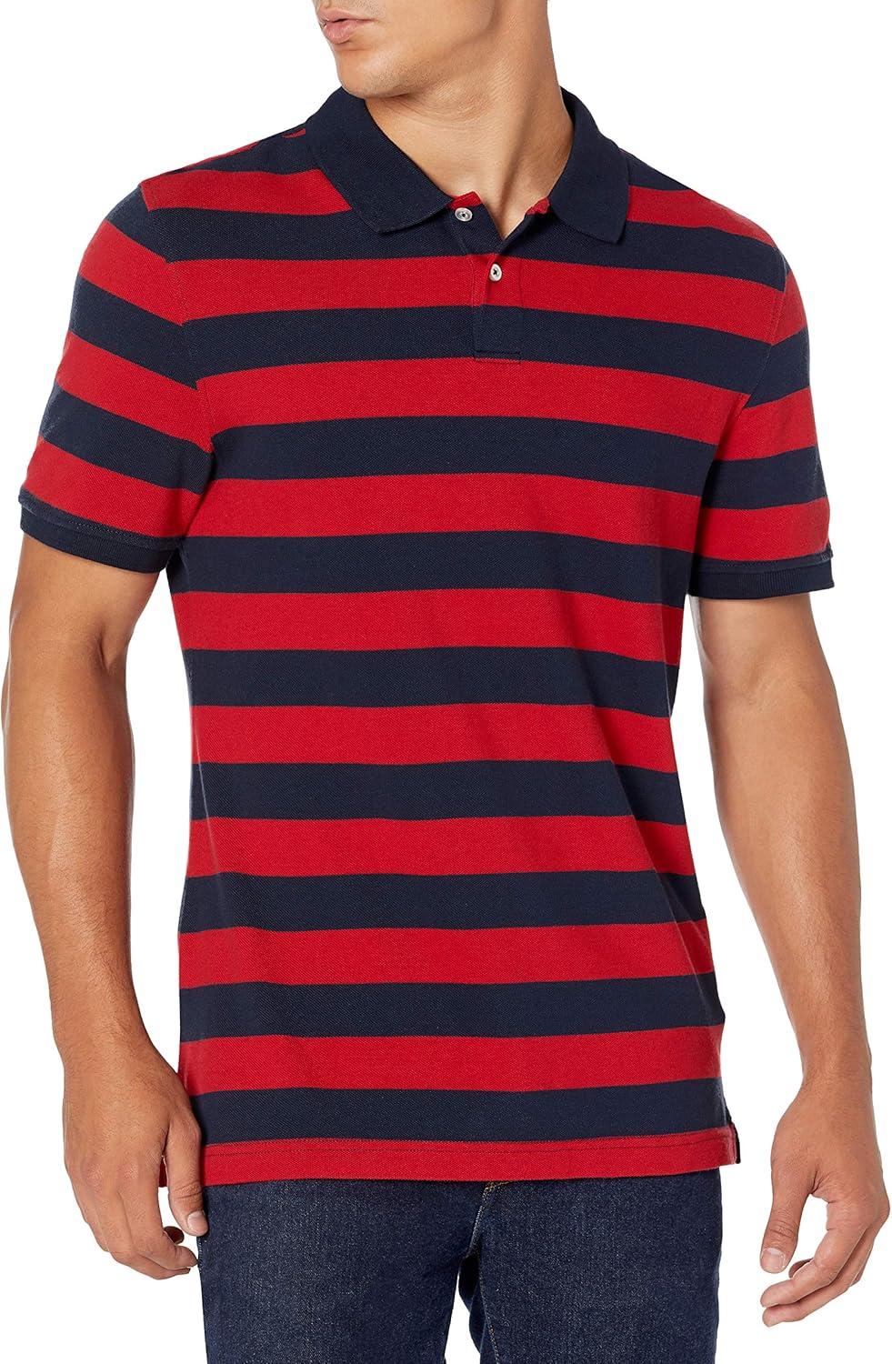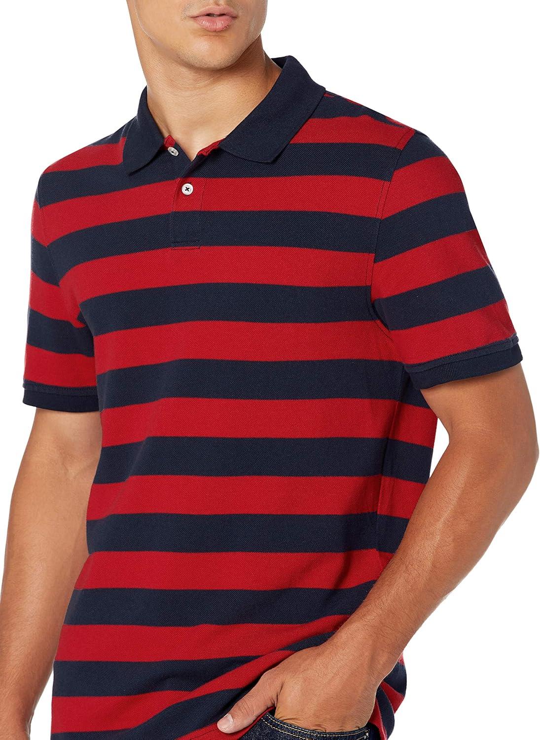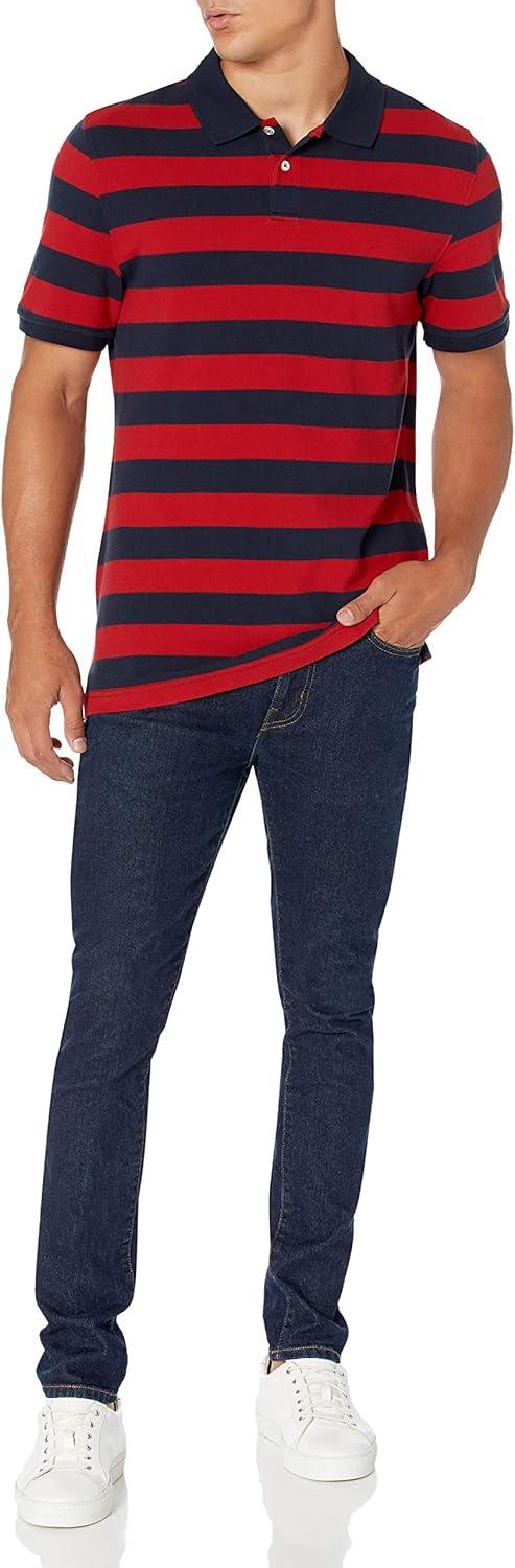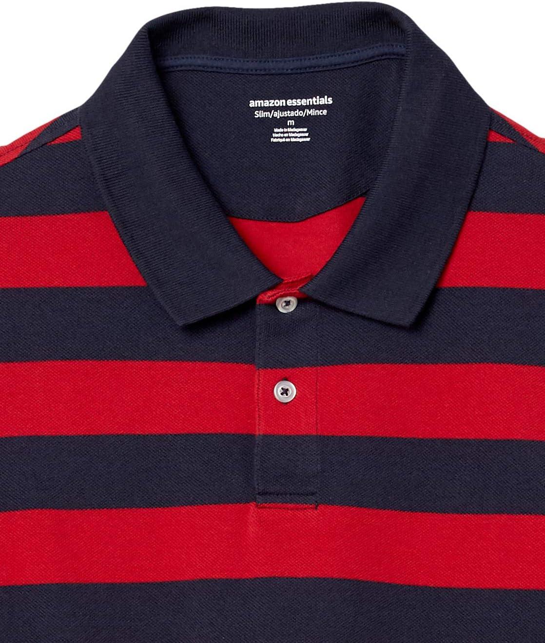 Amazon Essentials Men’s Polo Shirts Short Sleeve, Slim-Fit Cotton Pique(Navy Red Rugby Stripe)