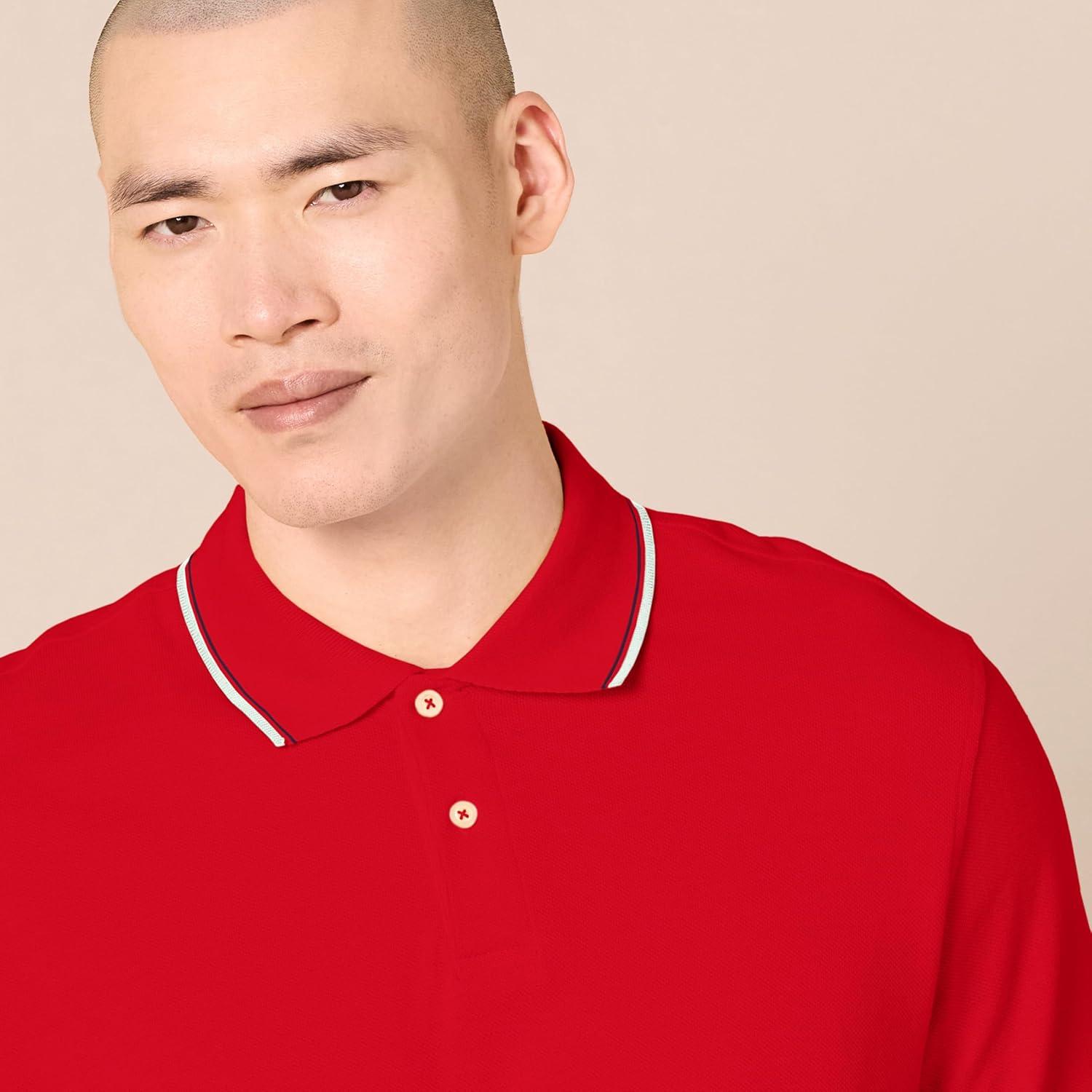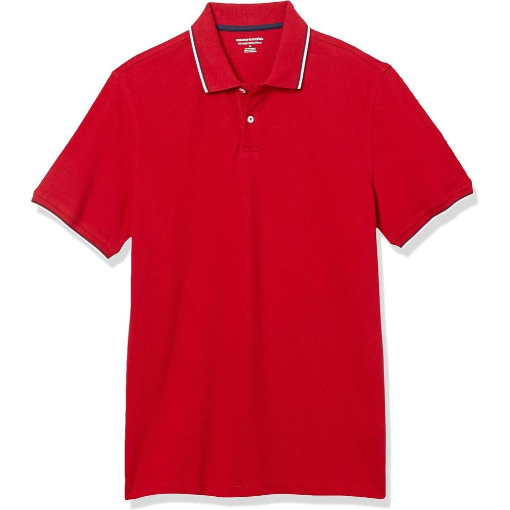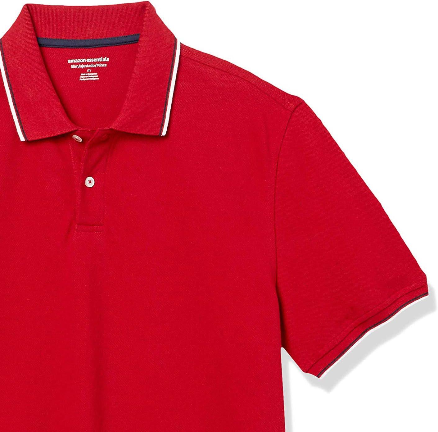 Amazon Essentials Men’s Polo Shirts Short Sleeve, Slim-Fit Cotton Pique(Red)