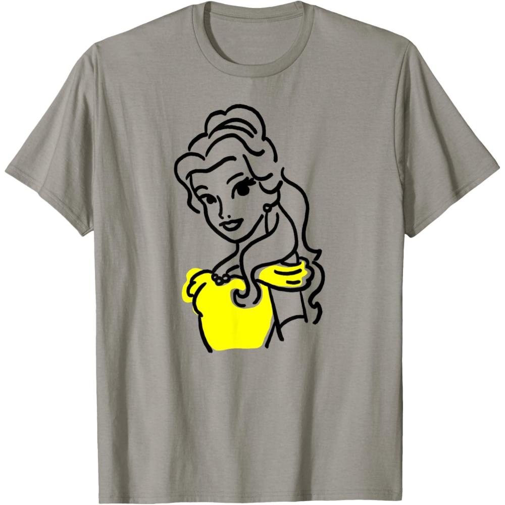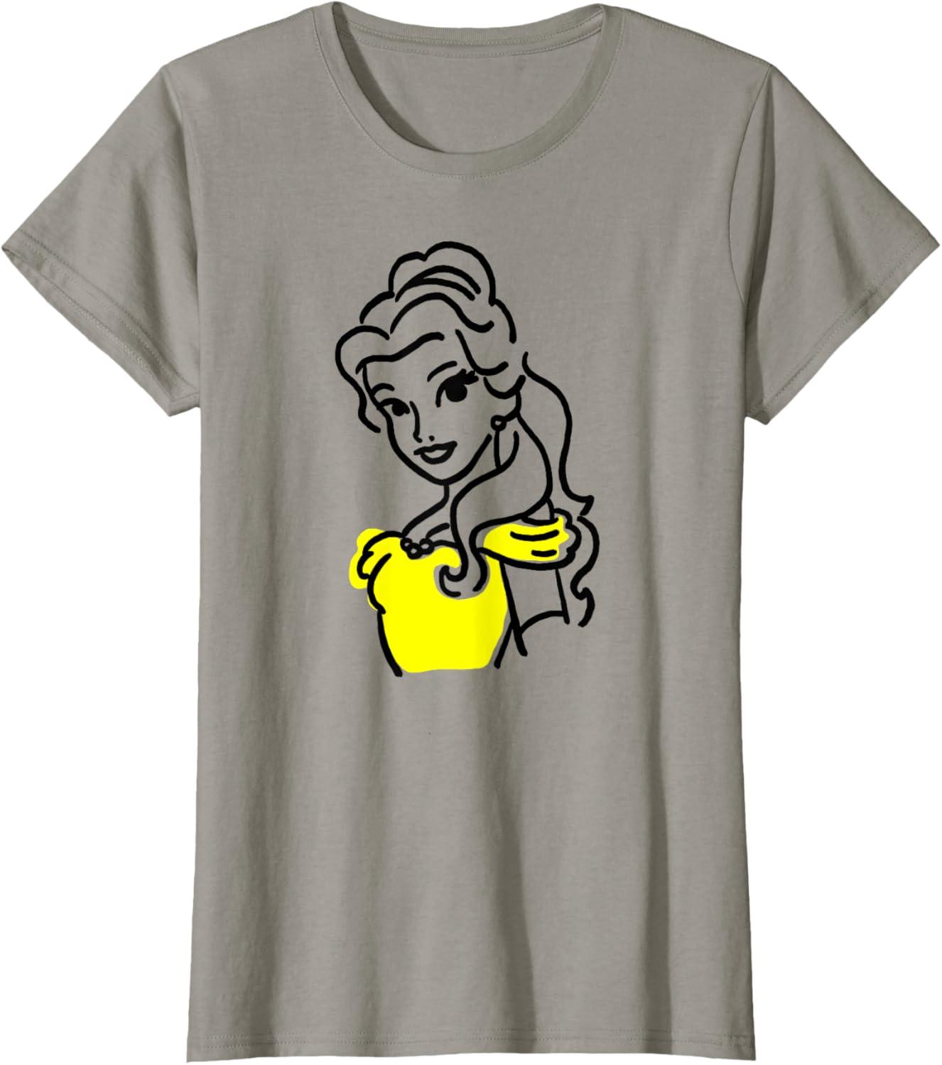 Amazon Essentials Men’s Princess Belle Linework Portrait T-Shirt, White, Small(Slate Grey)
