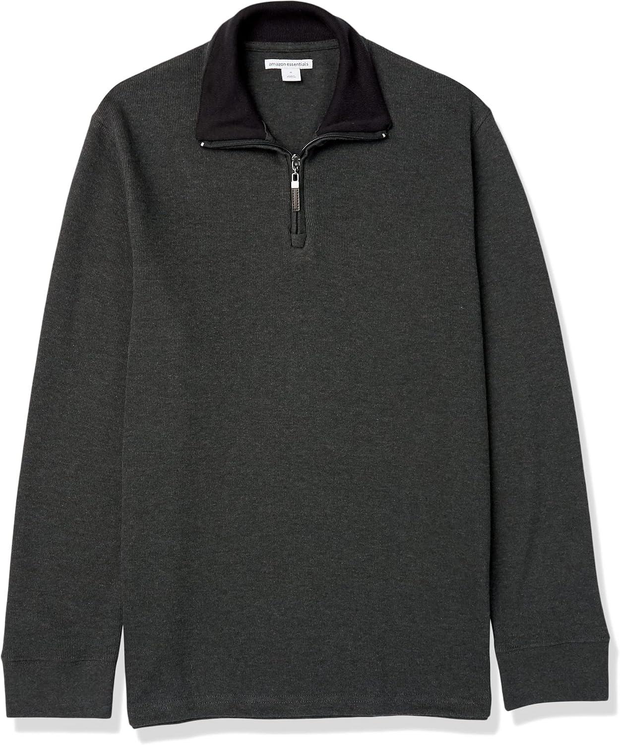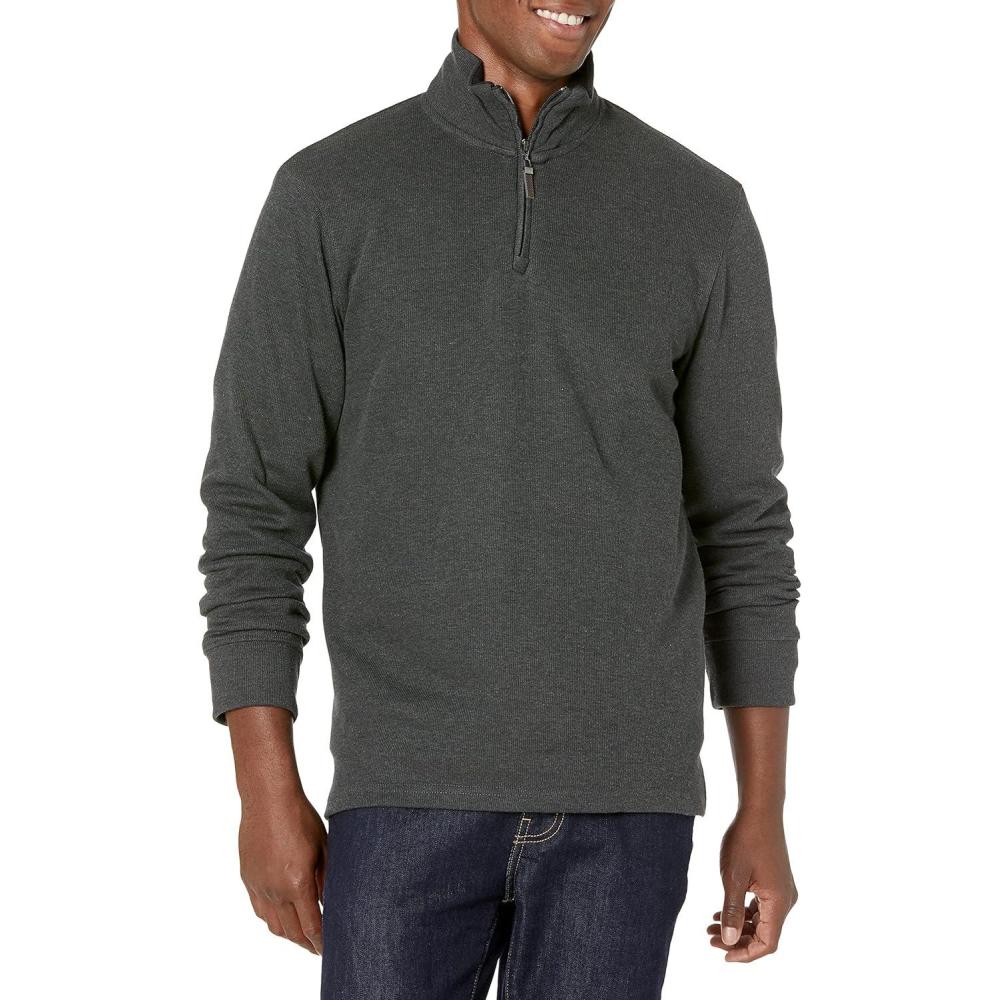 Amazon Essentials Men’s Quarter-Zip French Rib Sweater, Casual Wear(Charcoal Heather)