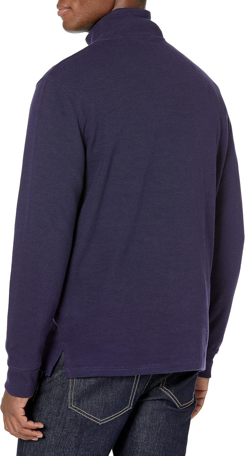 This men's sweatshirt features a regular fit for comfortable wear through the shoulders, chest, and waist, making it perfect for everyday use. Crafted from heavyweight French rib fabric, it offers a soft touch and natural stretch. The vertical rib texture and ribbed mock neck collar add sophistication, while the semi-hidden quarter-length zipper enhances convenience. Ribbed sleeve trim and a straight bottom hem provide a classic look. Versatile enough to wear over jeans or dress up with chinos, this quarter-zip sweater is a reliable layer for any occasion. With a focus on quality and affordability, Amazon Essentials ensures this sweatshirt meets high standards of comfort and style, making it a staple in your wardrobe.