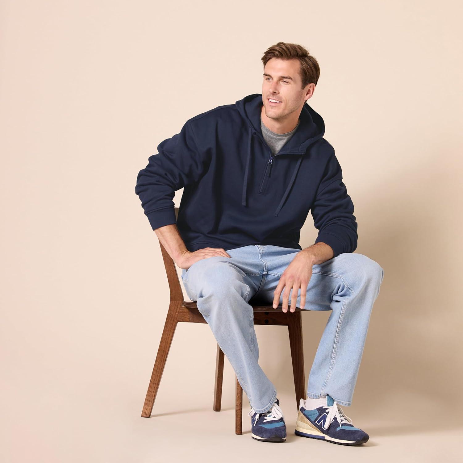 Don’t wait, get up to 50% off on Amazon Essentials Men’s Quarter-Zip Oversized-Fit Hoodie Sweatshirt(Navy) during our end-of-season sale event.